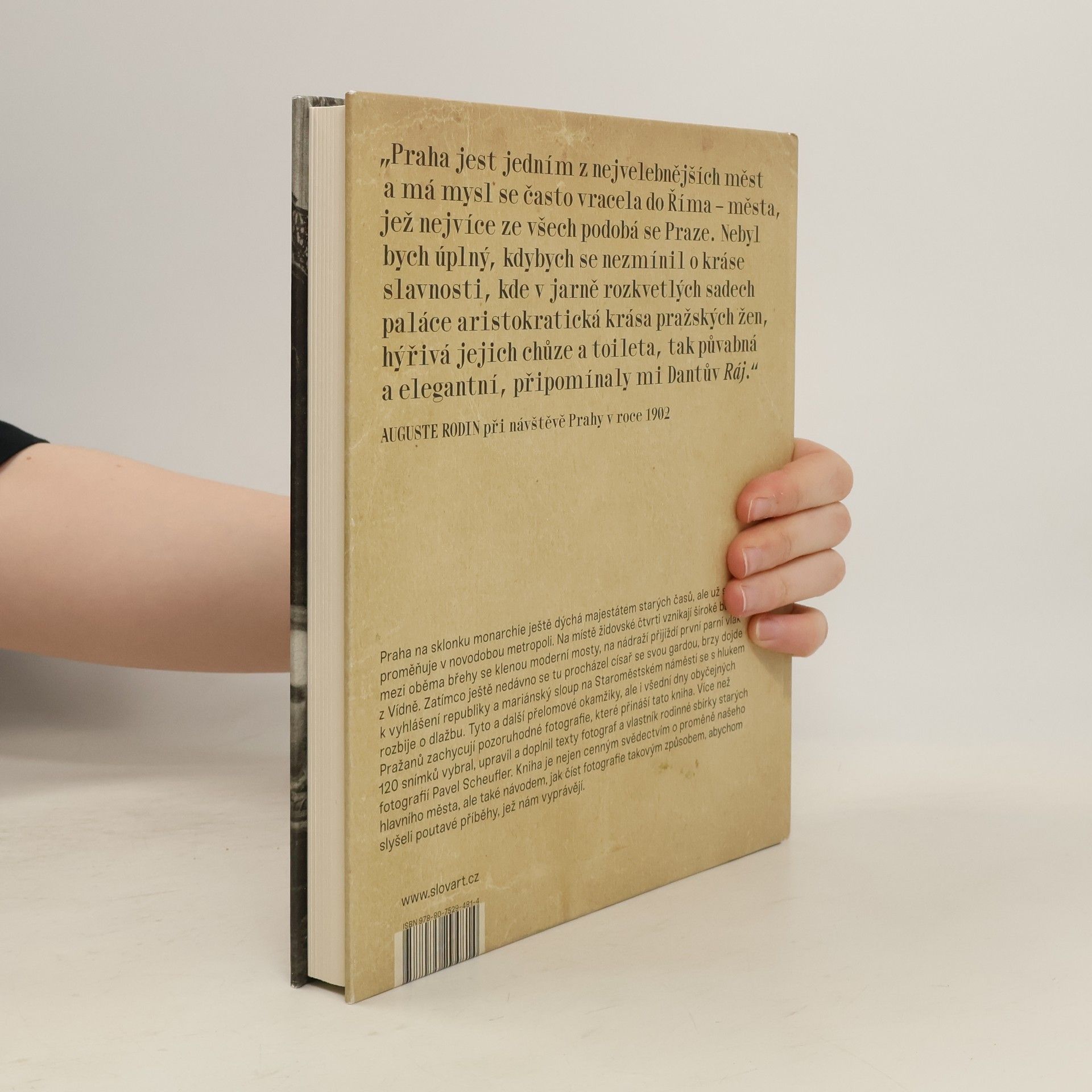 S předmluvou Karla Schwarzenberga Praha na sklonku monarchie ještě dýchá majestátem starých časů, ale už se proměňuje v novodobou metropoli. Na místě židovské čtvrti vznikají široké bulváry, mezi oběma břehy se klenou moderní mosty, na nádraží přijíždí první parní vlak z Vídně. Zatímco ještě nedávno se tu procházel císař pán se svou gardou, brzy dojde k vyhlášení republiky a mariánský sloup na Staroměstském náměstí se s hlukem rozbije o dlažbu. Tyto a další přelomové okamžiky, ale i všední dny obyčejných Pražanů zachycují pozoruhodné fotografie, které přináší tato kniha. Více než 140 snímků vybral, upravil a doplnil texty fotografa vlastník rodinné sbírky starých fotografií Pavel Scheufler. Kniha je nejen cenným svědectvím o proměně našeho hlavního města, ale také návodem, jak číst fotografie takovým způsobem, abychom slyšeli poutavé příběhy, jež nám vyprávějí. Vychází také v anglické a německé verzi.