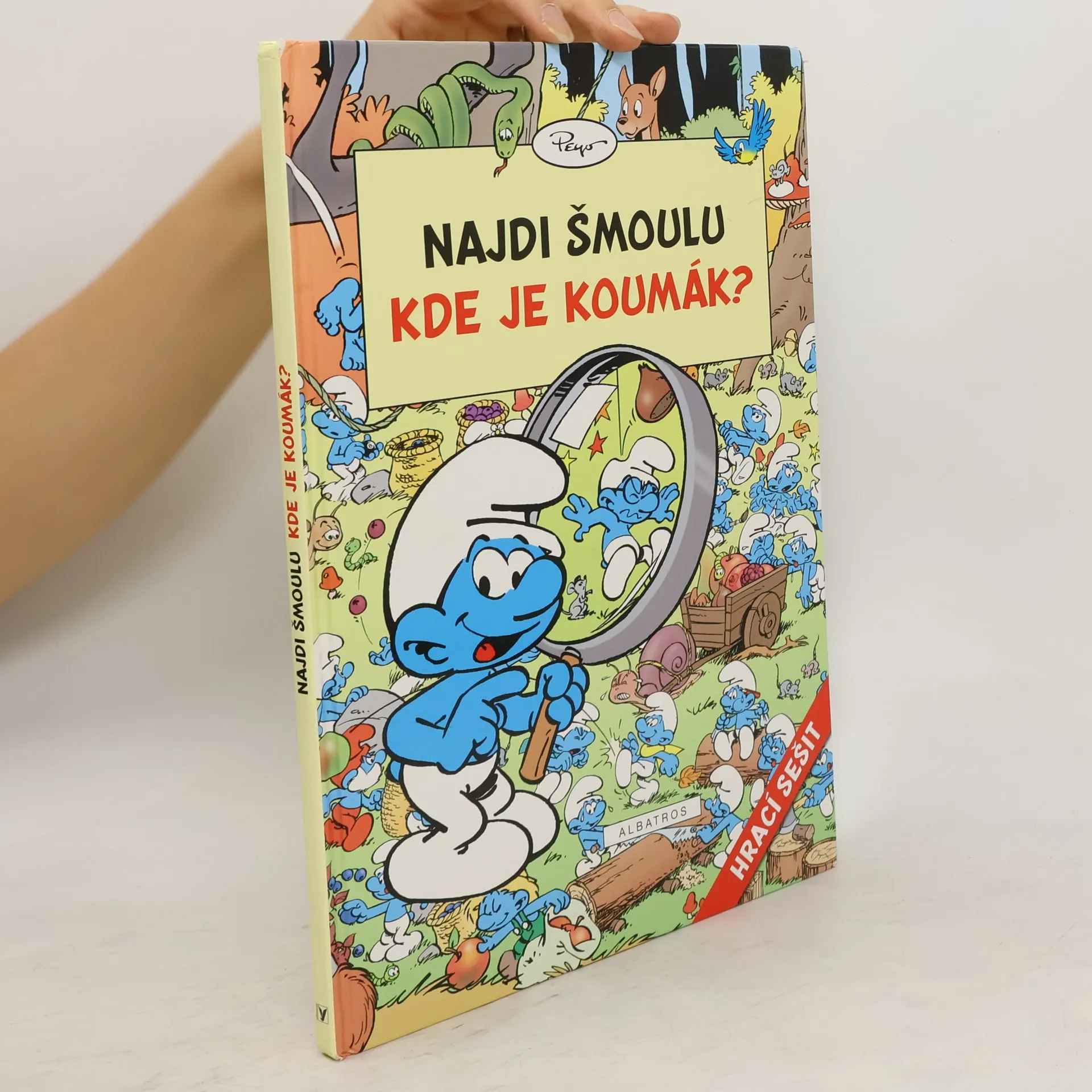 Další šmoulí hrací knížka. Tentokrát budeme kromě spousty dalších věcí hledat Koumáka!