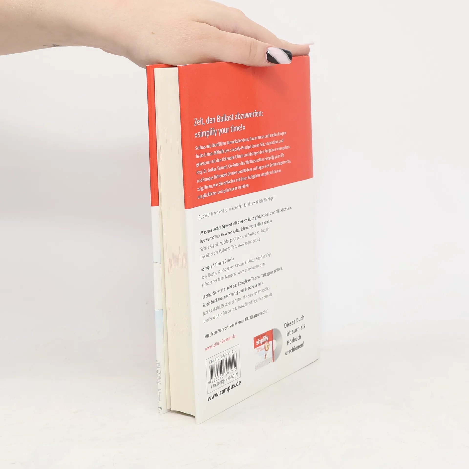Schluss mit überfüllten Terminkalendern, Dauerstress und endlos langen To-Do-Listen: Mithilfe des simplify-Prinzips lernen Sie, souveräner und gelassener mit den tickenden Uhren und drängenden Aufgaben umzugehen. Prof. Dr. Lothar Seiwert, Koautor des Weltbestsellers simplify your life und Europas führender Denker und Redner zu Fragen des Zeitmanagements, zeigt Ihnen, wie Sie einfacher mit Ihren Aufgaben umgehen können, um glücklicher und gelassener zu leben. So bleibt Ihnen endlich wieder Zeit für das wirklich Wichtige! Mit Vorwort von Werner Tiki Küstenmacher „Was uns Lothar Seiwert mit diesem Buch schenkt, ist Zeit zum Glücklichsein. Das einfachste und wertvollste Geschenk, das ich mir vorstellen kann.“ Sabine Asgodom, Erfolgs-Coach und Autorin des Bestsellers Lebe wild und unersättlich, www. asgodom. de „Lothar Seiwert macht das komplexe Thema Zeit ganz einfach. Bahnbrechend, nachhaltig und überzeugend.“ Jack Canfield, Autor von Kompass für die Seele, Lehrer in The Secret, www. DieErfolgsprinzipien. de „A timely book!“ Tony Buzan