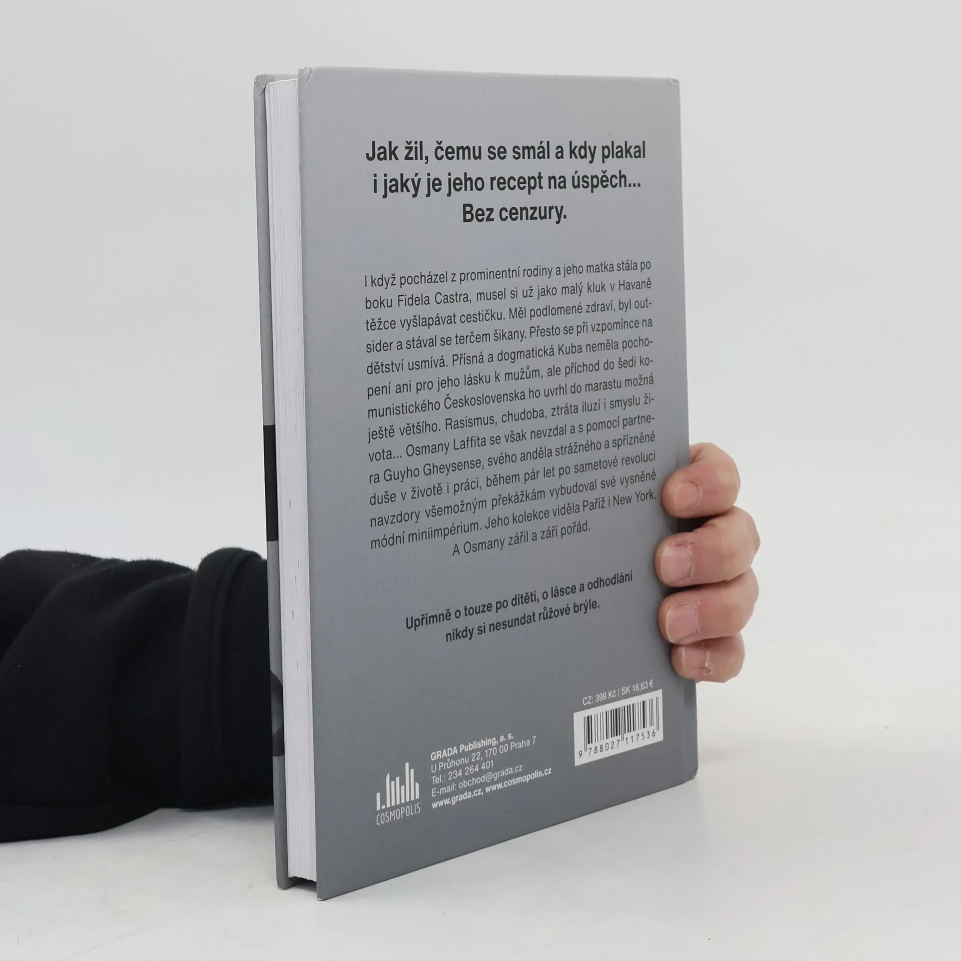 I když pocházel z prominentní rodiny a jeho matka stála po boku Fidela Castra, musel si už jako malý kluk v Havaně těžce vyšlapávat cestičku. Měl podlomené zdraví, byl outsider a stával se terčem šikany. Přesto se při vzpomínce na dětství usmívá. Přísná a dogmatická Kuba neměla pochopení ani pro jeho lásku k mužům, ale příchod do šedi komunistického Československa ho uvrhl do marastu možná ještě většího. Rasismus, chudoba, ztráta iluzí i smyslu života… Osmany Laffita se však nevzdal a s pomocí partnera Guyho Gheysense, svého anděla strážného a spřízněné duše v životě i práci, během pár let po sametové revoluci navzdory všemožným překážkám vybudoval své vysněné módní miniimpérium. Jeho kolekce viděla Paříž i New York. A Osmany zářil a září pořád. Upřímně o touze po dítěti, o lásce a odhodlání nikdy si nesundat růžové brýle.