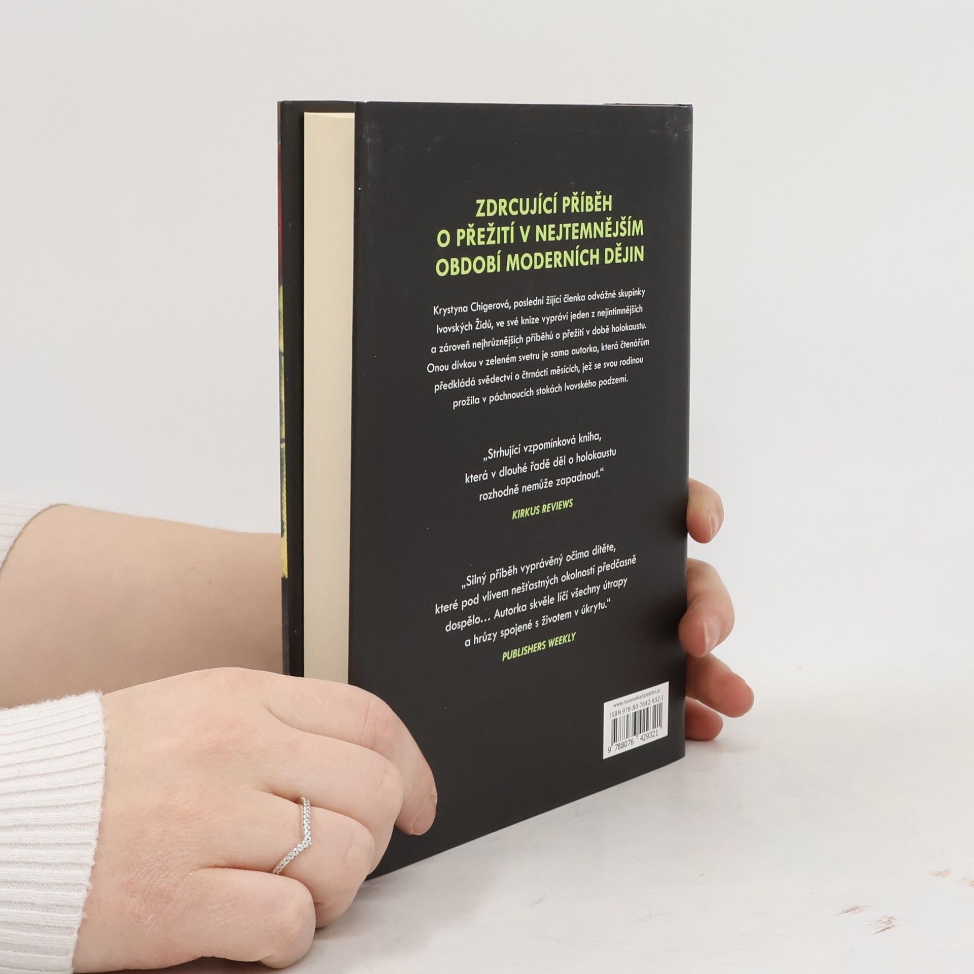 V roce 1943 se život sto padesáti tisíc lvovských Židů pomalu naplňoval. Deportace, vraždění, vystěhování do ghett a čekání na smrt. Skupinka několika z nich se troufale pokusila nalézt úkryt v městském kanalizačním systému. Poslední z této skupinky – Krystyna Chigerová – vypráví jeden z nejniternějších a nejhrůznějších příběhů přeživších holokaustu. Dívka v zeleném svetru je sama Chigerová, která nám předkládá svědectví o čtrnácti měsících, jež se svou rodinu prožila v páchnoucích stokách lvovského podzemí. Dívka v zeleném svetru je ovšem také příběhem Leopolda Sochy, nepravděpodobného zachránce skupiny. Polský katolík a bývalý zlodějíček, jenž s nasazením vlastního života zásoboval rodinu Chigerových v podzemí potravinami a dalšími nezbytnostmi. Dívka v zeleném svetru je silně emotivní příběh o životě v nepředstavitelných podmínkách; niterná zpověď o vůli přežít, přátelství a spáse.