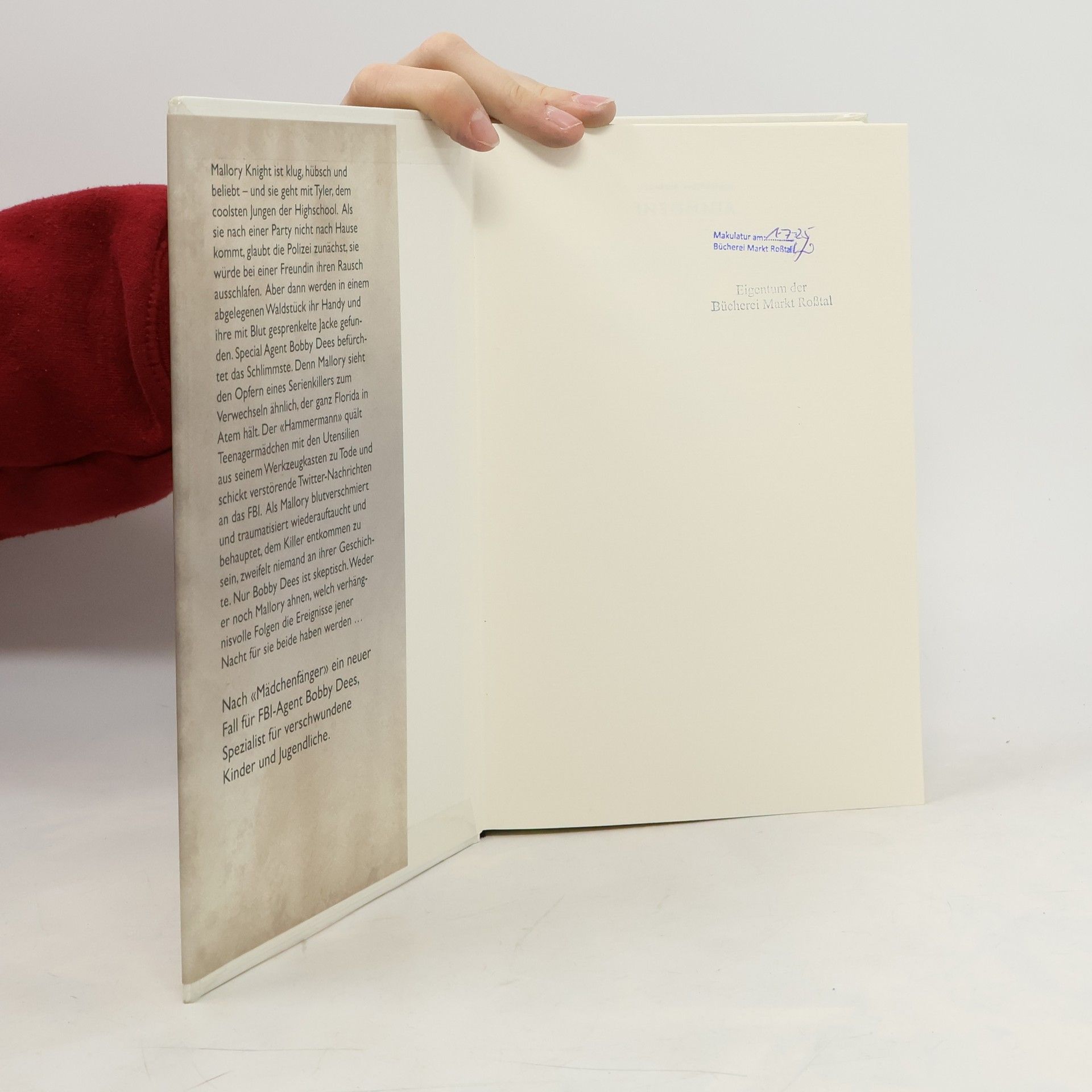 Der neue Thriller von Bestseller-Autorin Jilliane Hoffman: Nach „Mädchenfänger“ der zweite Fall für FBI-Agent Bobby Dees, Spezialist für verschwundene Kinder und Jugendliche.Sein Kopf fühlt sich an, als sei er in einen Schraubstock gezwängt. Er kann nicht essen, er kann nicht schlafen. Dann kehren die bösen Gedanken zurück. Und es gibt nur eines, was er tun kann, um sie loszuwerden ... Verstört und mit Schnittwunden übersät taumelt Mallory Knight in eine Biker-Bar in Süd-Florida. Zwei Tage lang war die 17-jährige Schülerin spurlos verschwunden. Sie behauptet, dem „Hammermann“ entkommen zu sein, einem Serienkiller, der bereits über ein Dutzend Teenagermädchen entführt und mit seinen schrecklichen Werkzeugen zu Tode gequält hat. Aber als Special Agent Bobby Dees Mallory befragt, verstrickt sie sich in Widersprüche. Kurz darauf wird ein weiteres Mädchen vermisst, und Mallory muss erkennen, dass ihre Aussage fatale Folgen hat...