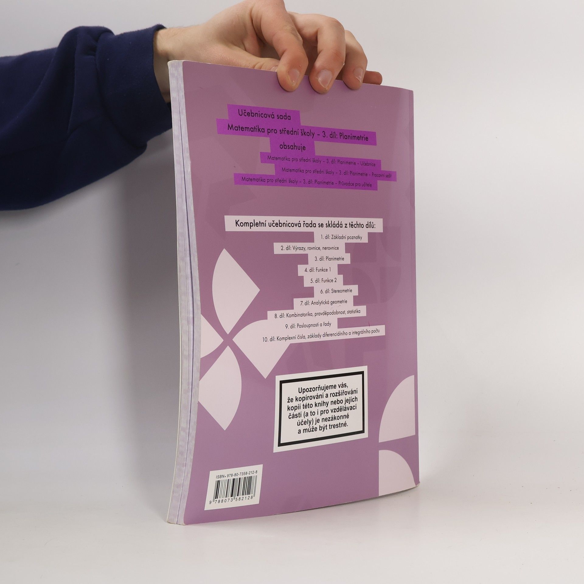 Nedílnou součástí učebnicové sady je i pracovní sešit, který tvoří s učebnicí jeden celek – předpokládá se využití obou částí učebnicové sady během vyučování.Jednotlivá témata pracovního sešitu jsou kompatibilní s učebnicí a usnadňují tak výuku jak učitelům, tak i jejich studentům. Pro přehlednost a snadnou práci s učebnicovou sadou odpovídá jedna kapitola učebnice jedné kapitole pracovního sešitu. Pracovní sešit učebnicové sady Matematika pro střední školy je výjimečný nejen snahou o zvyšování zájmu studentů o učivo, ale i velkým množstvím zcela nových zajímavých úloh, a to jak typem úloh s řešením formou výběru z možností, tak i typy otevřených úloh. Do pracovního sešitu je zařazena také řada slovních úloh umožňujících komplexní procvičení učiva. To vše přispívá ke zvyšování motivace studentů k učení; vědí totiž, že nové poznatky a dovednosti mohou dále využít. Struktura pracovního sešitu je navržena tak, aby mohl každý student dosáhnout úspěchu. Každá kapitola totiž obsahuje různorodé úkoly, které byly sestaveny na základě Bloomovy taxonomie vzdělávacích cílů. Úkoly jsou řazeny tak, aby u studentů nejdříve ověřovaly zapamatování a porozumění, následně jim umožnily tyto poznatky aplikovat při řešení složitějších úloh a v posledním kroku předkládaly úkoly vyžadující myšlenkový proces analýzy a hodnocení.