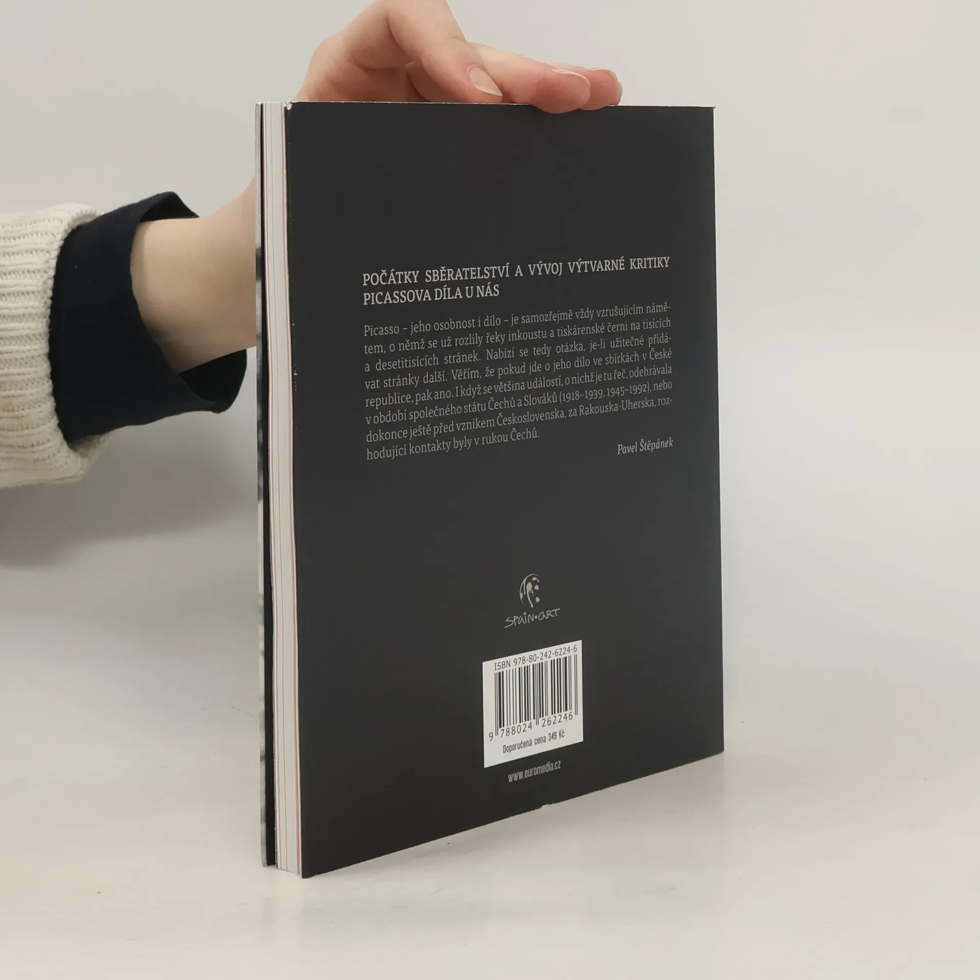 Významný český kunsthistorik Pavel Štěpánek sleduje kontakt geniálního Španěla s českým prostředím od samého počátku, tj. od prvního setkání ještě před první světovou válkou, v době rakousko-uherského soustátí, a to v Paříži, kde jej jako první poznal Alfons Mucha. Zachycuje, jak čeští umělci a kritici navštěvovali Picassa a jak jej poznávali osobně i zprostředkovaně. Hlavní důraz je však kladen na sledování kritických výroků a názorů na jeho tvorbu v českém prostředí. Kniha je doplněna reprodukcemi Picassových uměleckých děl.