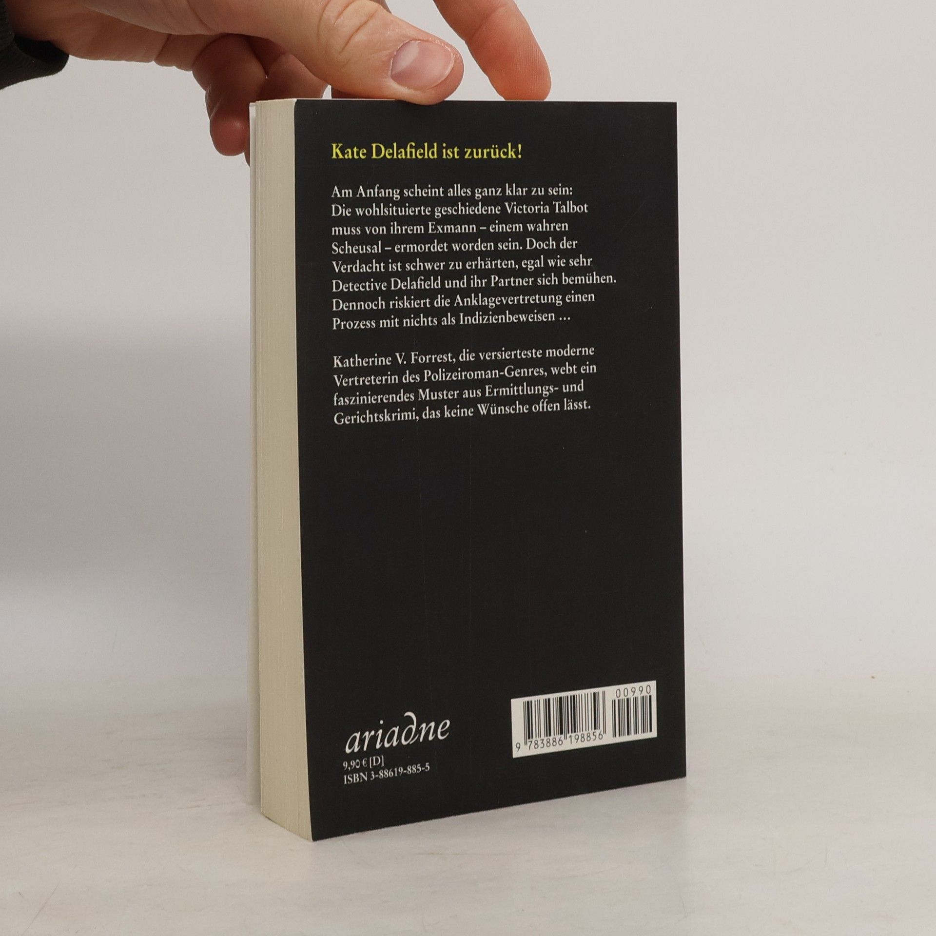 Am Anfang scheint alles ganz klar zu sein: Die wohlsituierte geschiedene Victoria Talbot muss von ihrem Exmann – einem wahren Scheusal – ermordet worden sein. Doch der Verdacht ist schwer zu erhärten, egal wie sehr Detective Delafield und ihr Partner sich bemühen. Dennoch riskiert die Anklagevertretung einen Prozess mit nichts als Indizienbeweisen … Katherine V. Forrest, die versierteste moderne Vertreterin des Polizeiroman-Genres, webt ein faszinierendes Muster aus Ermittlungs- und Gerichtskrimi, das keine Wünsche offen lässt.