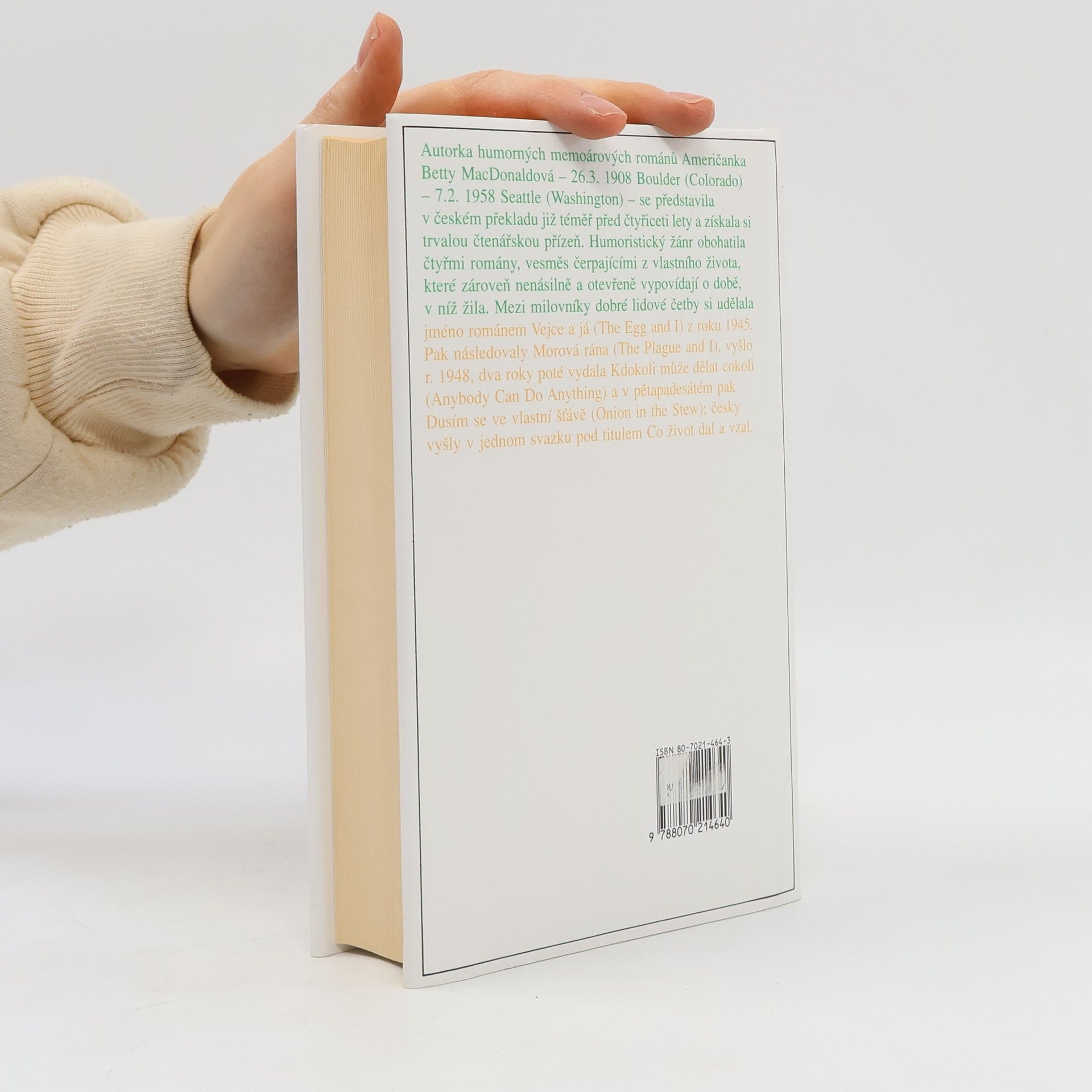 Úsměvná vyprávění americké autorky Betty MacDonaldové si získala oblibu svou bezprostředností a upřímností. Pod titulem Co život dal a vzal vyšly tři její práce - Kdokoli může dělat cokoli, Morová rána, Dusím se ve vlastní šťávě - navazující na její neméně populární knížku Vejce a já. MacDonaldová čerpá náměty výhradně z vlastního života, popisuje, co ji potkalo dobrého i zlého. Znovu přivádí k životu nesčetné množství lidí, s nimiž se setkala třeba jen letmo, nebo ať už její osudy ovlivnili významněji. K nejsilnějším a nejvýraznějším částem trilogie patří díl Morová rána, kdy vypráví o svém pobytu v tuberkulózním sanatoriu. Ať už ji však potkává cokoli, nikdy se beznadějně nepropadá do sebelítosti a pesimismu, vždy hledí kupředu s nadějí a vírou, že se vše dobře skončí. A právě pro tuto schopnost přenášet na čtenáře svou nezdolnou víru v člověka, který se nevzdává a svou činorodostí, elánem a dobrou náladou za všech okolností dokáže překonat všechny překážky, sklidila Betty MacDonaldo