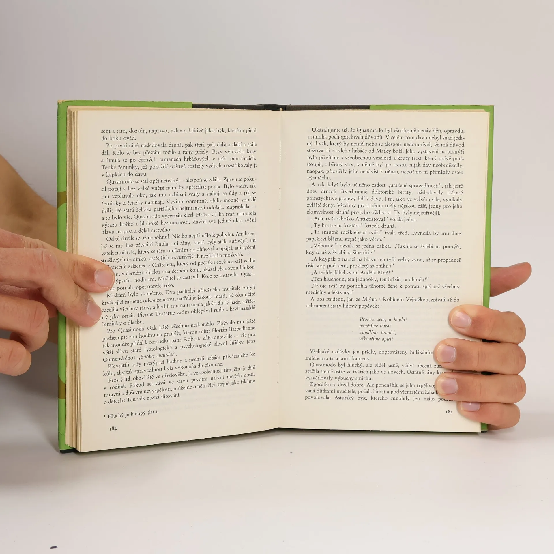 Historický román odehrávající se v Paříži v 15. století za vlády Ludvíka XI., vystavěný v chronologické kompozici s v romantismu obvyklými prvky retardace. Victor Hugo čtenáře zavede do dokonale vykreslené atmosféry patnáctého století a seznámí nás s tragickým příběhem znetvořenéhoQuasimoda, krásné Esmeraldy a proradným knězem Frollem.