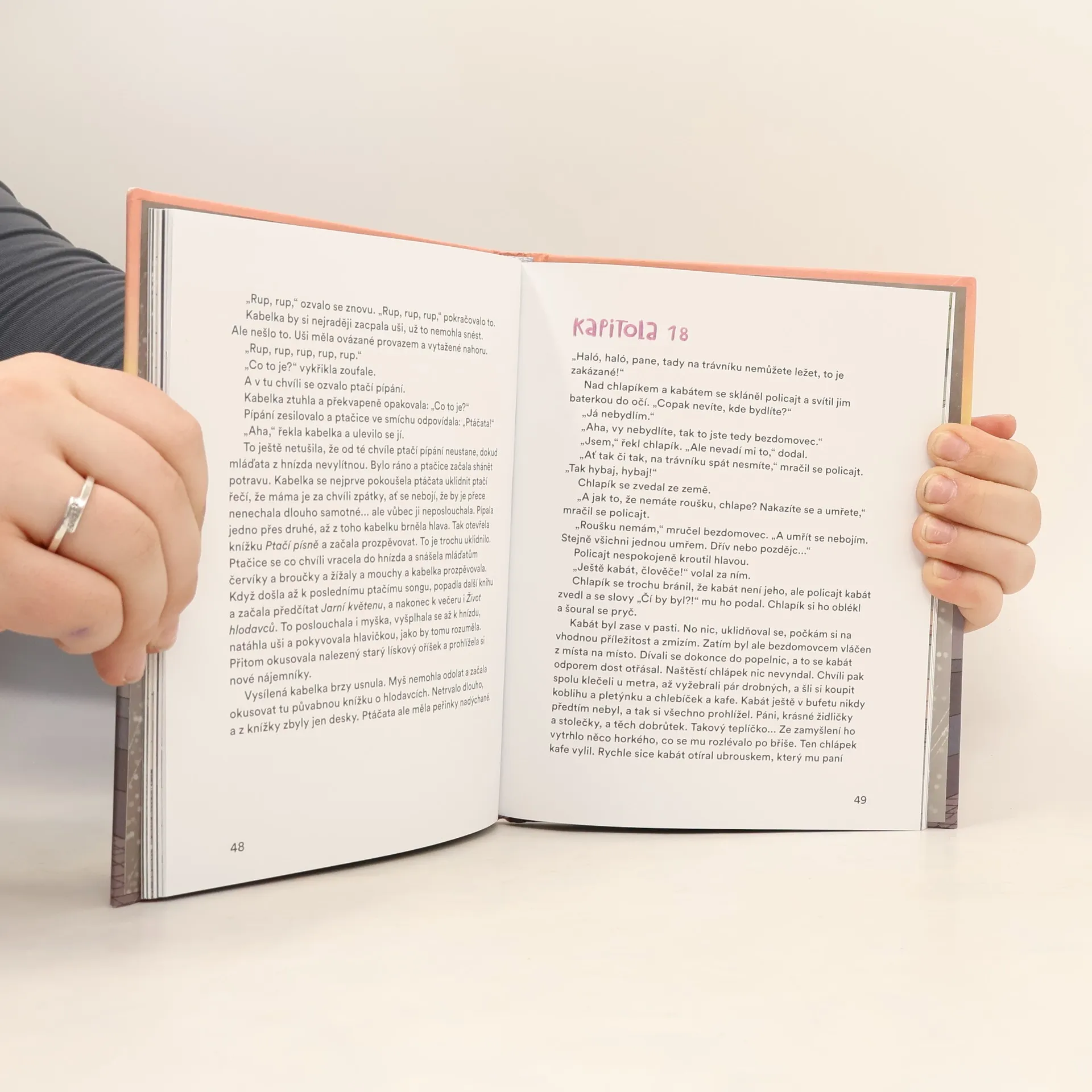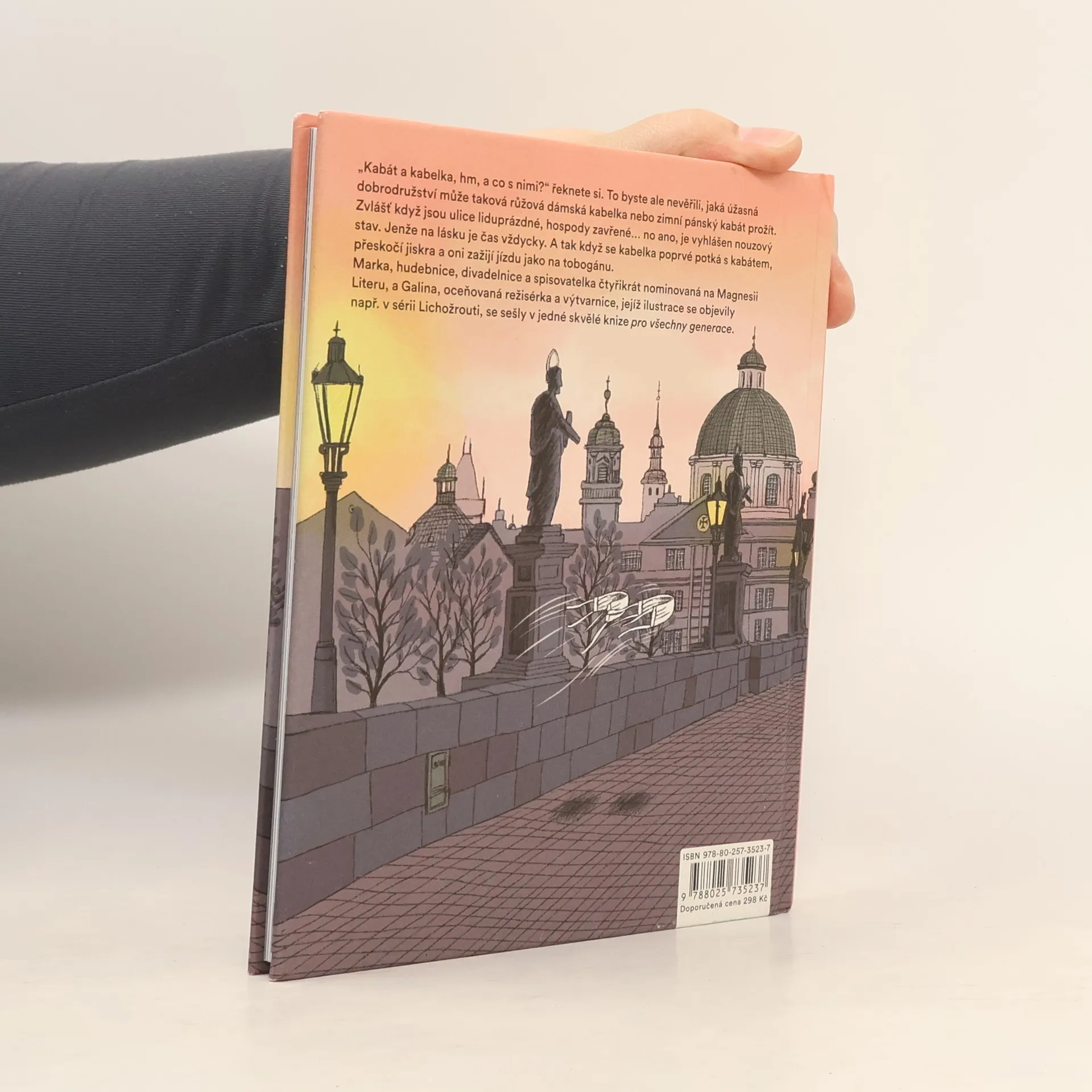 Fantazijní příběh odehrávající se v Praze za koronavirové pandemie má neobvyklé hrdiny: kabát a kabelku. Jsou to obyčejné věci, ale jejich život je jako jízda v tobogánu, plný zvratů i osudových náhod. Poprvé se ti dva potkají v autobuse. Kabelka, vášnivá čtenářka, jede do knihovny půjčit si knihy a kabát pospíchá ke krejčímu: potřebuje přistehovat knoflíky a zalátat roztrženou kapsu. Podruhé se jejich cesty zkříží, když kabelka uklouzne na chodníku a kabát jí pomůže vstát. A zase si jdou po svém, jenže tentokrát je něco jinak. Že by přeskočila jiskra? Oba ještě čeká řada dobrodružství. Kabát se dostane do rukou rybáře a ten ho zapomene v hospodě. Večer ale vláda vyhlásí nouzový stav a všechny hospody zůstanou zavřené. Co jen si kabát v ztemnělém lokálu počne? I kabelka prožívá rozličné štrapáce. Setkají se ti dva potřetí? Vydání knihy podpořilo Ministerstvo kultury České republiky.