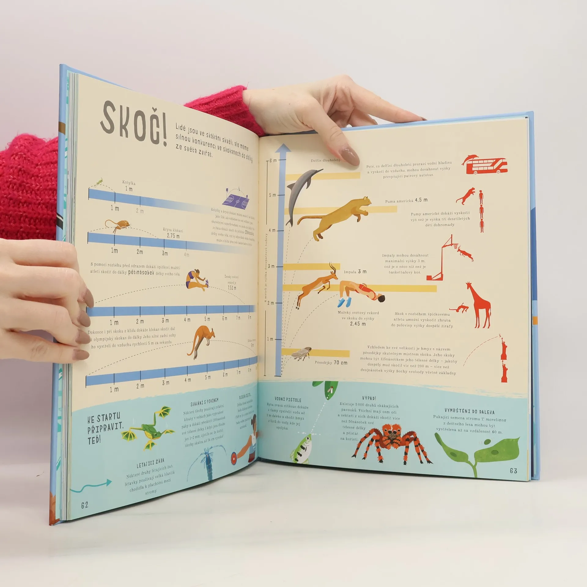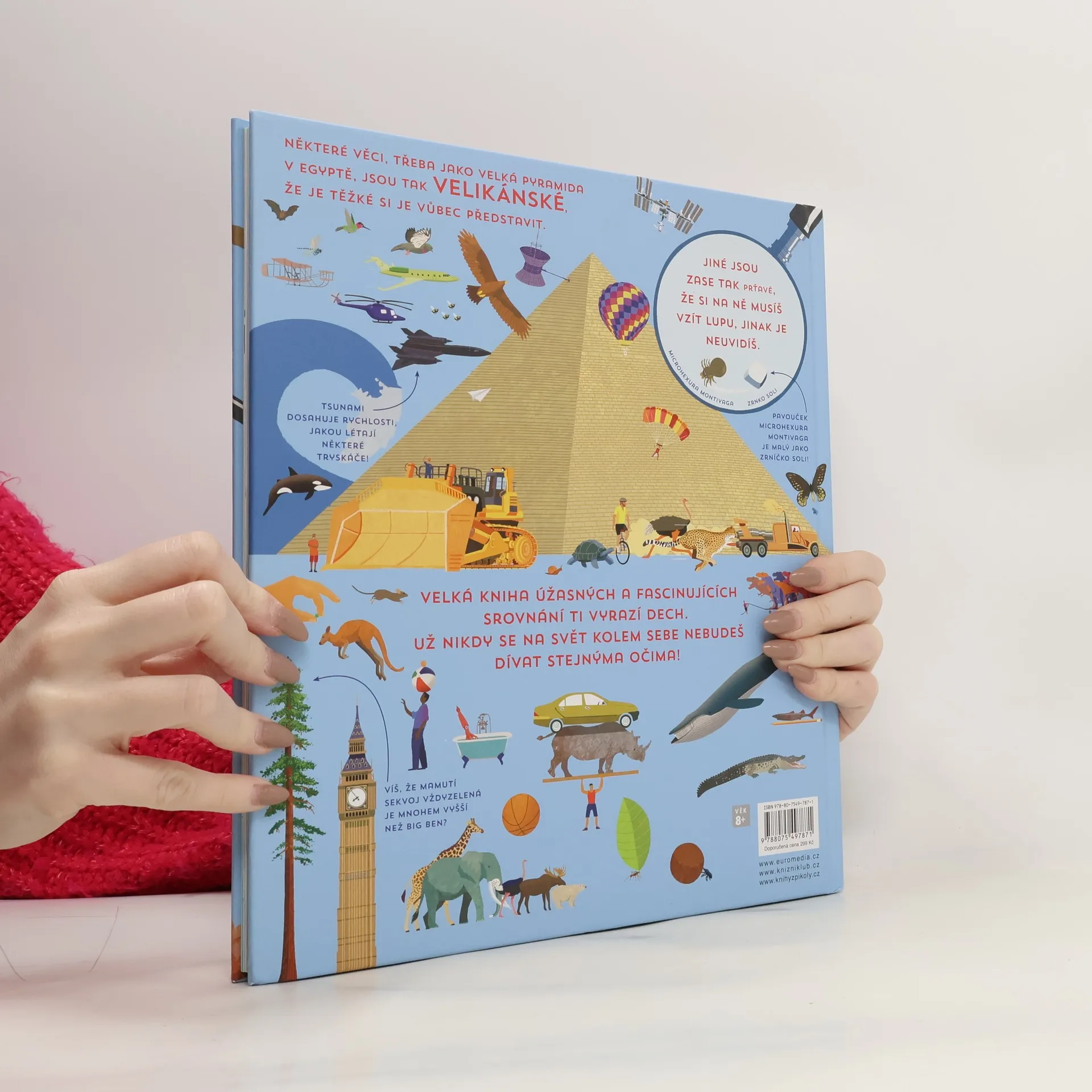 Co mají společného gepard a porsche? Věděli jste, že… gepard dokáže stejně jako porsche zrychlit na rychlost úžasných 112 km/h během pouhých 3 sekund? Že Měsíc je v průměru jen o maličko užší než Austrálie? Že nejvyšší strom na světě, mamutí sekvoje vždyzelená, má zhruba stejnou výšku jako budova o 26 patrech? A že velryba je dlouhá asi jako 19 plavců, kdybychom je seřadili za sebou? Velká kniha rozdílů je plná úžasných srovnání a informací, které tobě i tvých kamarádům vyrazí dech, a hlavně si s ní užiješ spoustu zábavy. Kniha je určena pro zvědavce od 7 let.