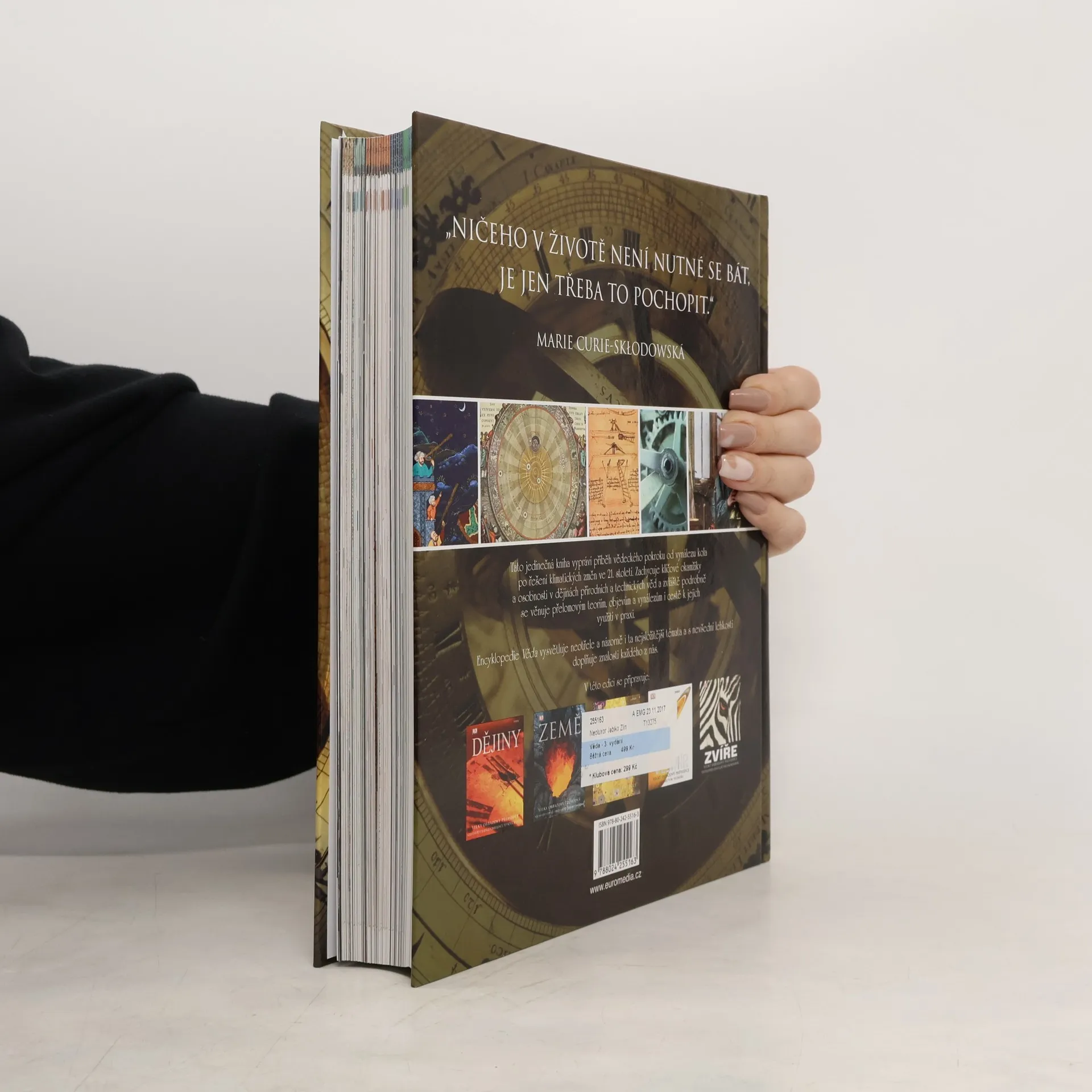 Tato jedinečná kniha vypráví příběh vědeckého pokroku od vynálezu kola až po řešení klimatických změn ve 21. století. Zachycuje všechny klíčové okamžiky nových objevů a ukazuje, jak lidé a jejich myšlenky a vynálezy měnili náš svět. Encyklopedie Věda, vybavená nádhernými fotografiemi a názornými ilustracemi, představuje i ta nejsložitější témata jednoduchým a srozumitelným způsobem, zpřístupňujícím tak lidské vědění čtenářům všech věkových kategorií.