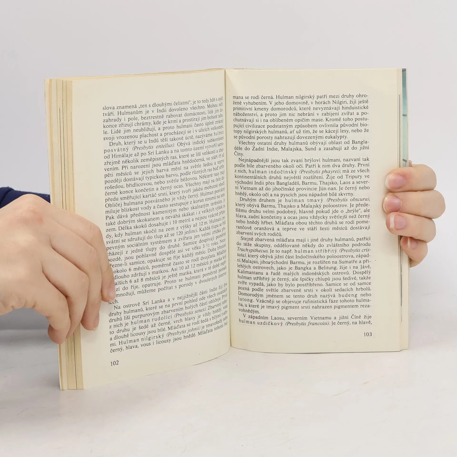Populárně vědecká knížka o všech známých druzích žíjících primátů. Seznamuje s rozšířením a způsobem života tan, poloopic, lemurů i nejmenších opic světa. Popisuje zvláštní znaky opic Jižní Ameriky, vzácné druhy chované v zoologických zahradách, paviány, mangabeje, makaky a kočkodany. Informuje o charakteristických rysech lidoopů a připomíná dosud neobjasněnou otázku existence sněžného muže. – Druhé vydání.