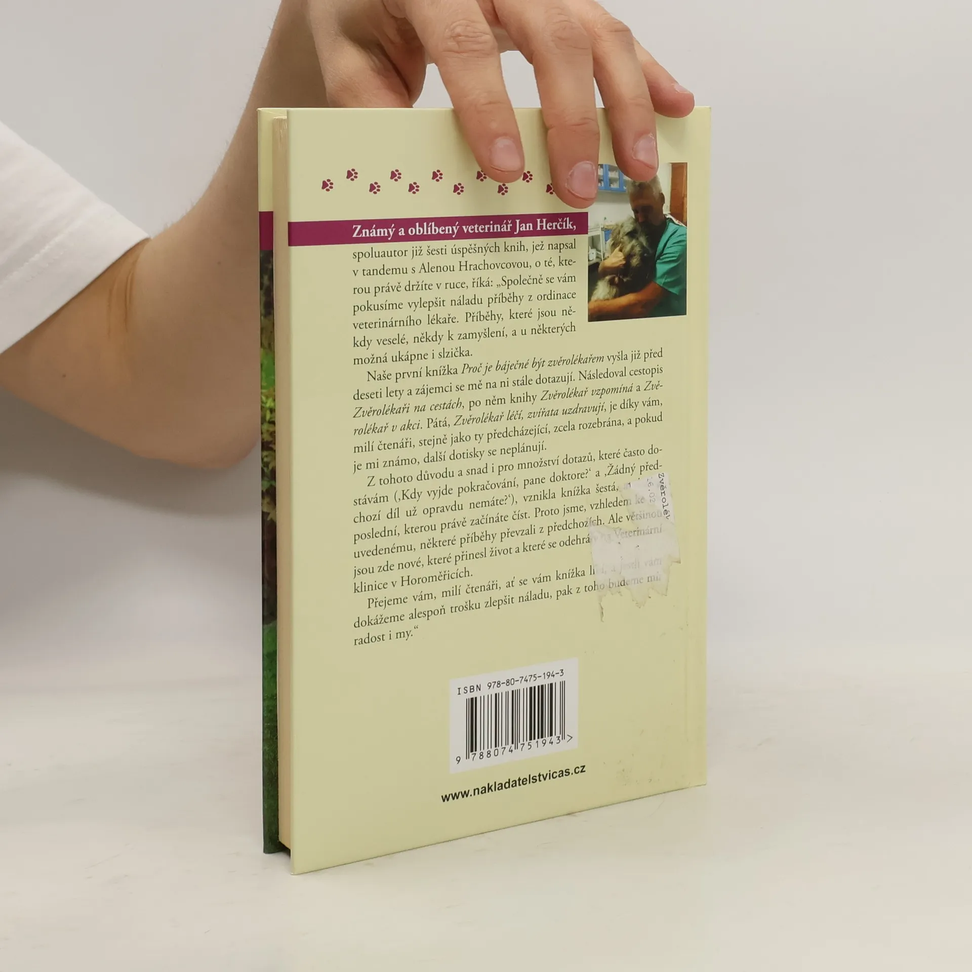 Známý a oblíbený veterinář Jan Herčík, spoluautor již pěti úspěšných knih, které napsal v tandemu s Alenou Hrachovcovou, o této knižní novince říká: „Společně se vám pokusíme náladu vylepšit příběhy z ordinace veterinárního lékaře. Příběhy, které jsou někdy veselé, někdy k zamyšlení, a u některých možná ukápne i slzička. Naše první knížka Proč je báječné být zvěrolékařem vyšla již před deseti lety a zájemci se mě na ni stále dotazují. Následoval cestopis Zvěrolékaři na cestách. Po něm knihy Zvěrolékař vzpomíná a Zvěrolékař v akci. Poslední Zvěrolékař léčí a zvířata uzdravují je díky vám, milí čtenáři, stejně jako ty předcházející, zcela rozebrána, a pokud je mi známo, další dotisky se neplánují. Z tohoto důvodu, a snad i pro množství dotazů, které často dostávám (,Kdy vyjde další pokračování, pane doktore?‘ a ,Žádný předchozí díl už opravdu nemáte?‘), vznikla knížka šestá, a vlastně poslední, kterou právě začínáte číst. Proto jsme, vzhledem ke zde uvedenému, některé příběhy převzali z knížek předchozích. Ale většinou jsou zde nové, které přinesl život a které se odehrály na Veterinární klinice v Horoměřicích. Přejeme vám, milí čtenáři, ať se vám knížka líbí, a jestli vám dokážeme alespoň trošku zlepšit náladu, pak z toho budeme mít radost i my.“