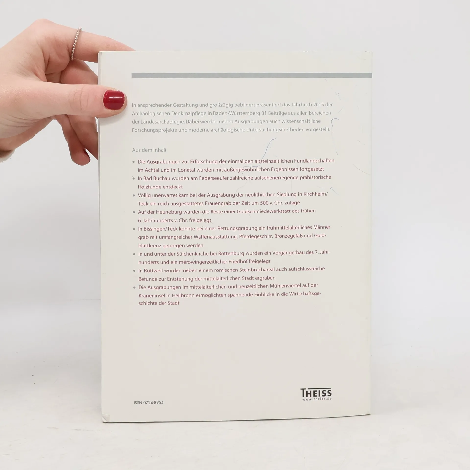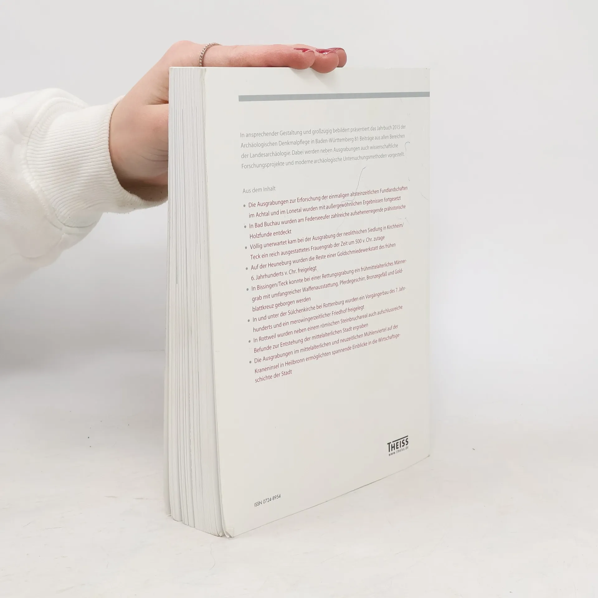 Ansprechend, übersichtlich und verständlich präsentiert dieser reich bebilderte Band die jüngsten Ergebnisse archäologischer Forschung in Baden-Württemberg aus erster Hand. In zahlreichen Beiträgen geben die Autoren Einblicke in Grabungsprojekte, die im Jahr 2015 zu interessanten neuen Erkenntnissen führten