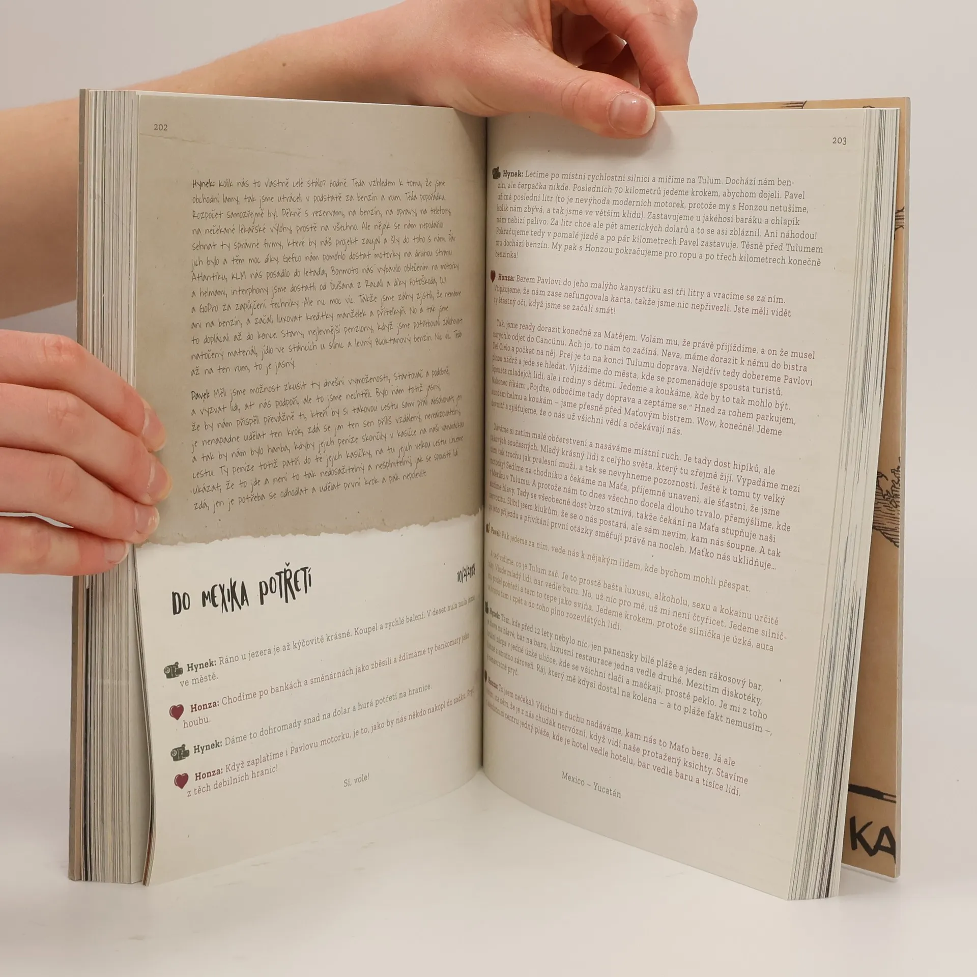 Mozaika deníků třech Vandráků, co cestujou po Střední Americe, točí o tom dokument a plní si sen. Potkávají lidi, divokou přírodu, dávný časy a sami sebe. Jsou špinavý, šťastný, protivný a občas je jim smutno, ale ze všeho nejvíc se smějou a dělají si ze všeho legraci. Ze sebe, z toho, jak padají, nerozumí španělsky, i z toho, že dostali šanci o tom všem teď napsat svoji velkou knihu. Často po cestě dávají otázky ostatním lidem a někdy dá cesta otázku jim. Jet podle navigace, nebo intuice? Drze, nebo bezpečně? Společně, nebo sami? Zakusuješ se víc ty do cesty, nebo cesta do tebe? A odpověď? – Prostě jedeme! Sí, vole! Tři úplně jiný palice, tři motorky, tři deníky a tři měsíce na cestě Střední Amerikou.