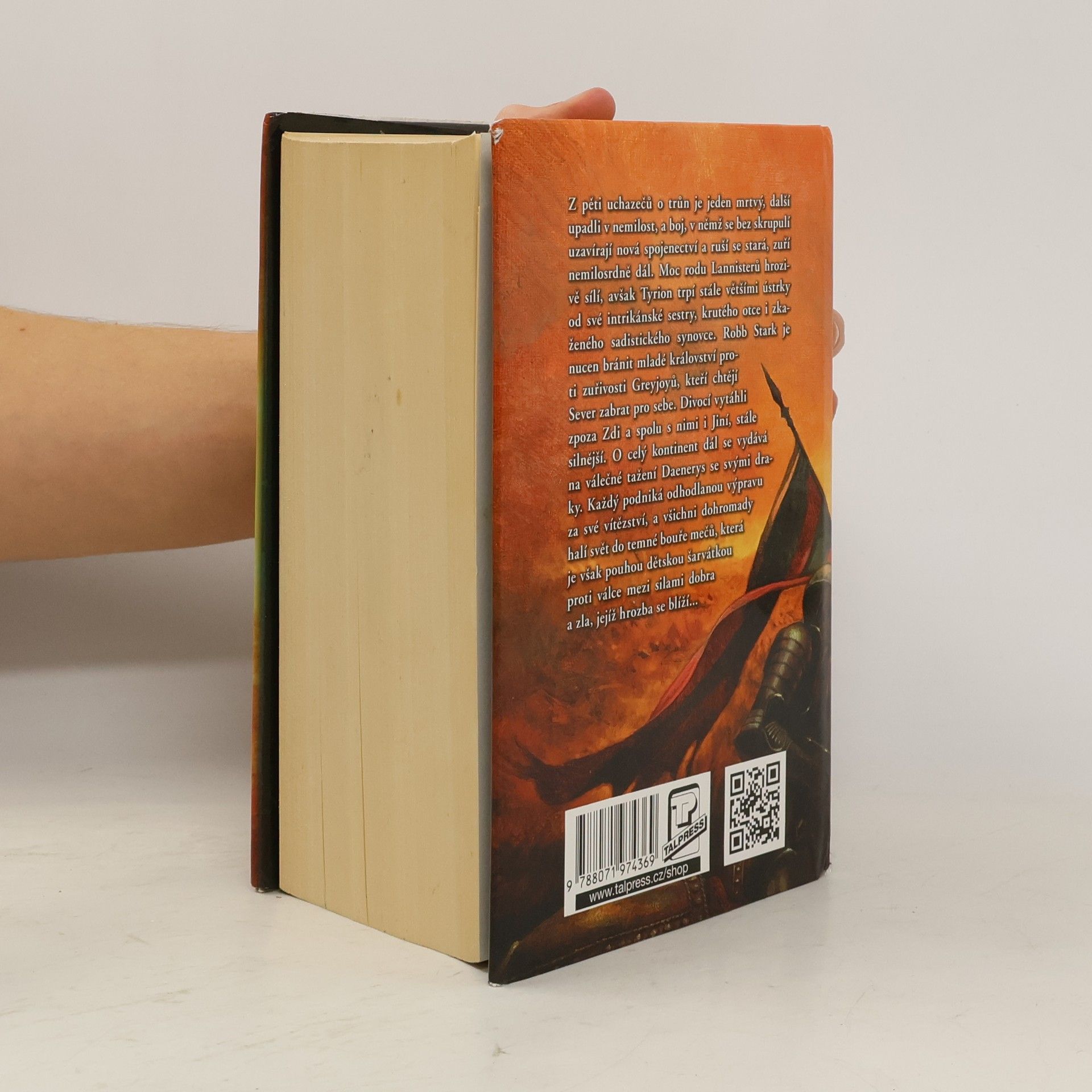Z pěti uchazečů o trůn je jeden mrtvý, další upadli v nemilost, a boj, v němž jsou bez skrupulí uzavírána nová spojenectví a rušena stará, zuří nemilosrdně dál. Moc rodu Lannisterů hrozivě sílí, avšak Tyrion trpí stále většími ústrky od své intrikánské sestry, krutého otce i zkaženého sadistického synovce. Robb Stark je nucen bránit mladé království proti zuřivosti Greyjoyů, kteří si chtějí Sever zabrat pro sebe. Divocí vytáhli zpoza Zdi a spolu s nimi nabývají na síle Jiní. O celý kontinent dál se vydává na válečné tažení Daenerys a její draci nebezpečně rostou.Každý podniká odhodlanou výpravu za své vítězství, a všichni dohromady halí svět do temné bouře mečů, která je však pouhou dětskou šarvátkou ve srovnání s válkou mezi silami dobra a zla, jejíž hrozba se blíží…