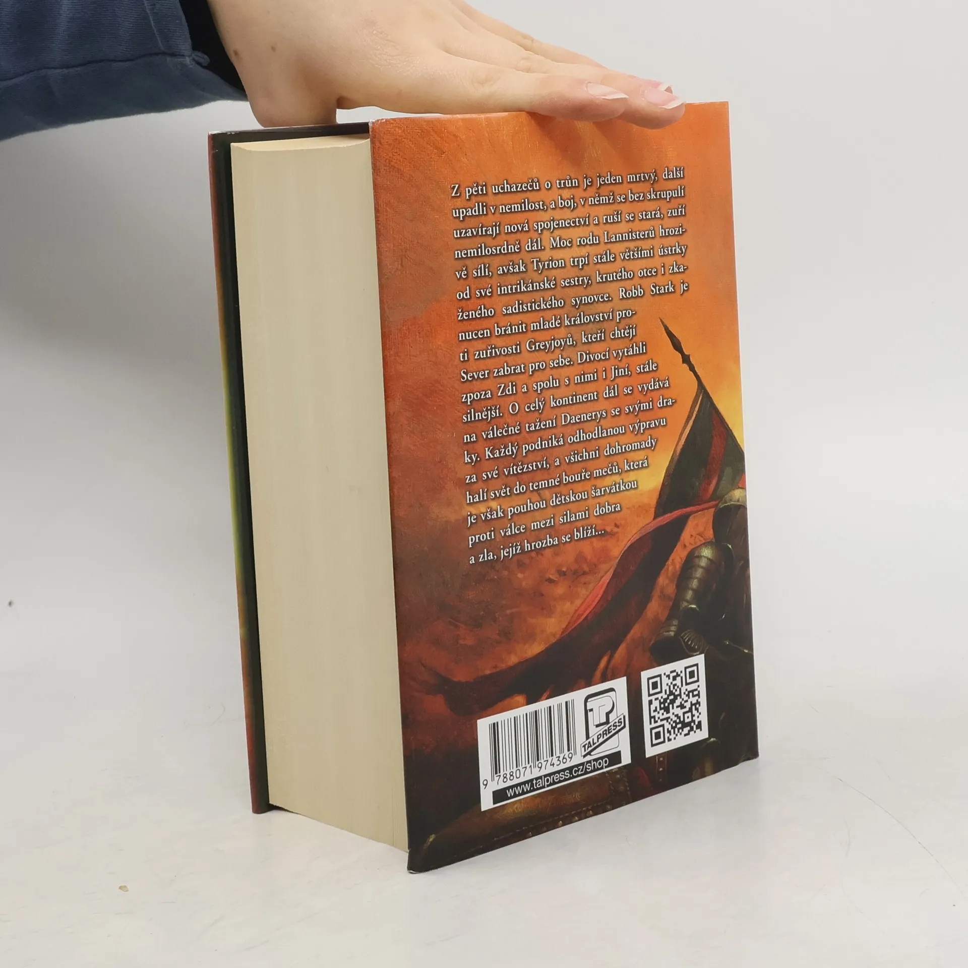 Z pěti uchazečů o trůn je jeden mrtvý, další upadli v nemilost, a boj, v němž jsou bez skrupulí uzavírána nová spojenectví a rušena stará, zuří nemilosrdně dál. Moc rodu Lannisterů hrozivě sílí, avšak Tyrion trpí stále většími ústrky od své intrikánské sestry, krutého otce i zkaženého sadistického synovce. Robb Stark je nucen bránit mladé království proti zuřivosti Greyjoyů, kteří si chtějí Sever zabrat pro sebe. Divocí vytáhli zpoza Zdi a spolu s nimi nabývají na síle Jiní. O celý kontinent dál se vydává na válečné tažení Daenerys a její draci nebezpečně rostou.Každý podniká odhodlanou výpravu za své vítězství, a všichni dohromady halí svět do temné bouře mečů, která je však pouhou dětskou šarvátkou ve srovnání s válkou mezi silami dobra a zla, jejíž hrozba se blíží…