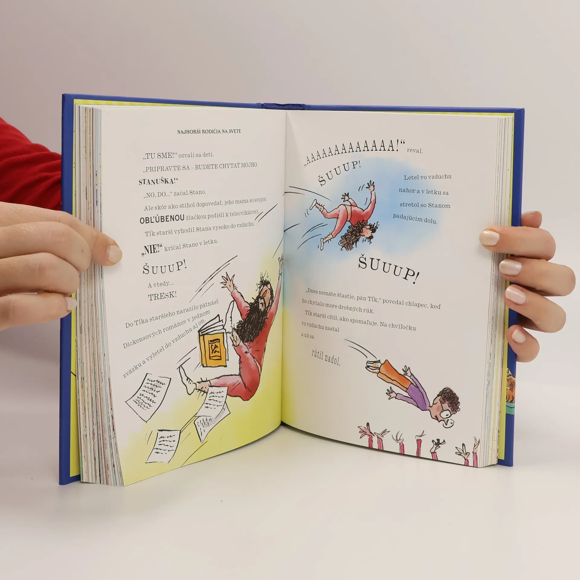 Svetoznámy britský komik a autor detských bestsellerov David Walliams už napísal tri knihy o najhorších deťoch na svete aj knihu o najhorších učiteľoch, no nezabudol ani na rodičov. Samozrejme, je to kniha o tých najhorších a najtrápnejších rodičoch na zemeguli. Že tých máte doma? No... veď uvidíme... Každému, kto siahne po tejto knihe, okamžite svitne, že jeho rodičia tým našim nesiahajú ani po členky. Ak sa k vám priblíži Peter Puch, okamžite si musíte zapchať nos alebo utekať po kyslíkovú masku. Najrýchlejšej matke Uršule Uponáhľanej by sa rýchlo odpratal z cesty aj medveď grizly. A Monty Monopol? Kradne hračky vlastným deťom. Radšej si dajte pozor. Áno, všetci rodičia sú trápni, ale pri čítaní o tých najpodivnejších, najtrápnejších a najšialenejších vám môžu od smiechu prasknúť gate. A kto vám ich potom zašije? No predsa tá najhoršia z najhorších! Supermatka! Má otrasné šaty, v jednej ruke kefu, v druhej mop, a už sa teší, ako vám ich zašije... alebo prišije k...