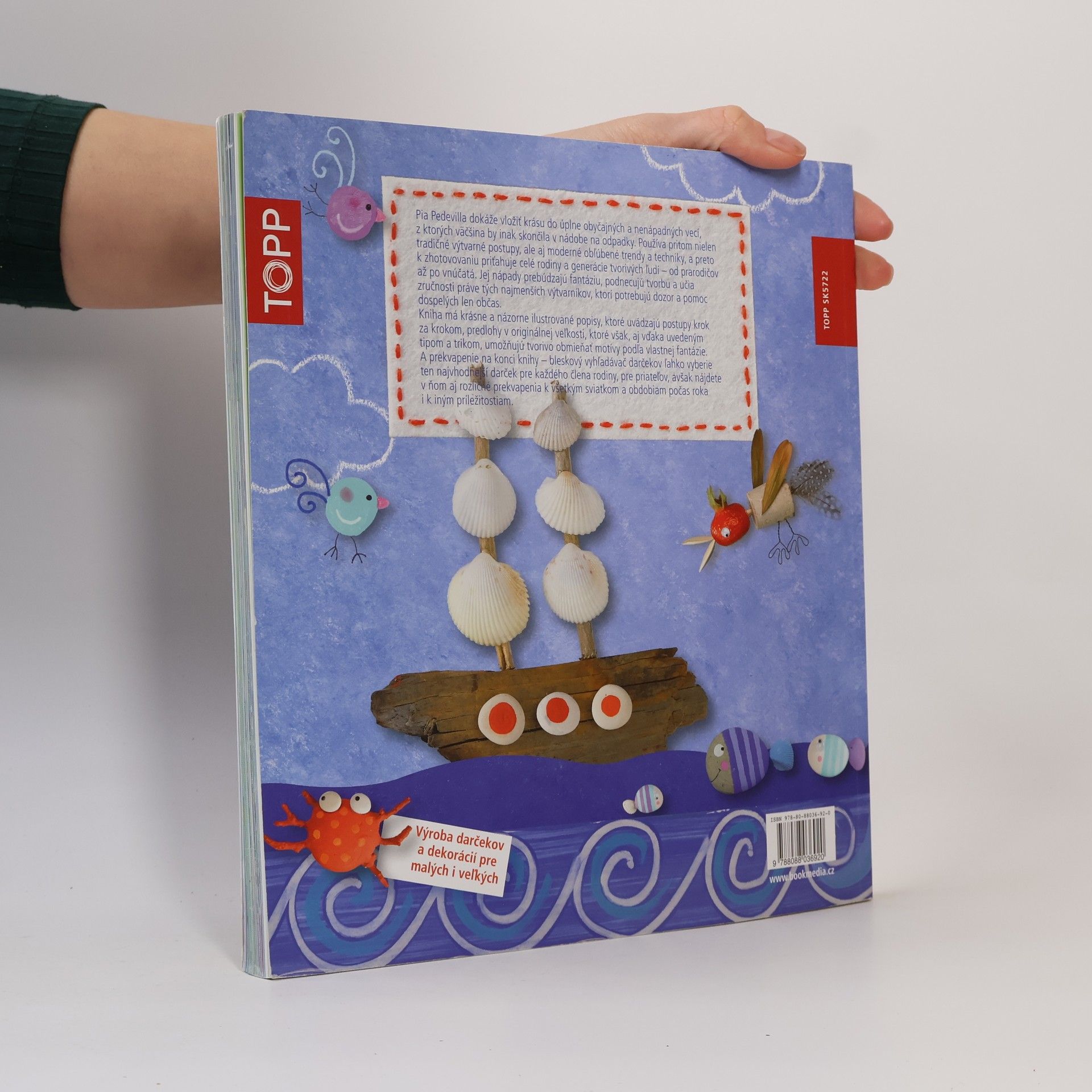 Pia Pedevilla dokáže vložiť krásu do úplne obyčajných a nenápadných vecí, z ktorých väčšina by inak skončila v nádobe na odpadky. používa pritom nielen tradičné výtvarné postupy, ale aj moderné obľúbené trendy a techniky, a preto k zhotovovaniu priťahuje celé rodiny a generácie tvorivých ľudí - od prarodičov až po vnúčatá. Jej nápady prebúdzajú fantáziu, podnecujú tvorbu a učia zručnosti práve tých najmenších výtvarníkov, ktorí potrebujú dozor a pomoc dospelých len občas. Kniha má krásne a názorne ilustrované popisy, ktoré uvádzajú postupy krok za krokom, predlohy v originálnej veľkosti, ktoré však, aj vďaka uvedeným tipom a trikom, umožňujú tvorivo obmieňať motívy podľa vlastnej fantázie. A prekvapenie na konci knihy - bleskový vyhľadávač darčekov ľahko vyberie ten najvhodnejší darček pre každého člena rodiny, pre priateľov, avšak nájdete v ňom aj rozličné prekvapenia k všetkým sviatkom a obdobiam počas roka i k iným príležitostiam.