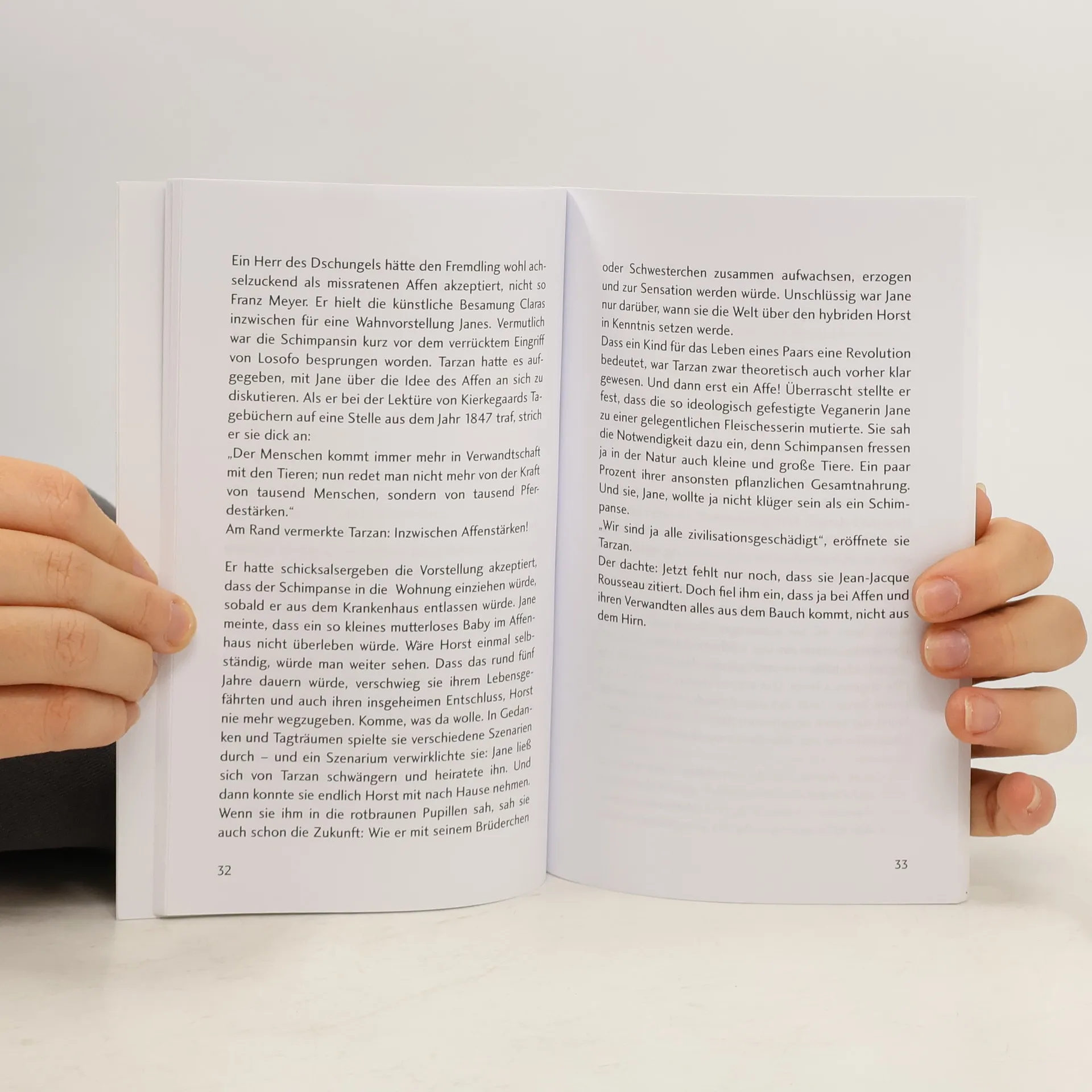 Tierpflegemeisterin Jane Frankenbein träumt seit langem von einem Mischwesen aus Affe und Mensch. Der Affenanteil müsse zu einem humaneren Wesen führen, glaubt sie. Jane missbraucht ihren Freund, einen Medizinstudenten mit dem Spitznamen Tarzan, und die ihr anvertraute Schimpansin Clara, um ihren Plan auszuführen. "...und wie der Affe um so lächerlicher wird, je mehr er sich den Menschen ähnlich zeigt, so werden auch jene Narren desto lächerlicher, je vernünftiger sie sich gebärden." (Heinrich Heine)