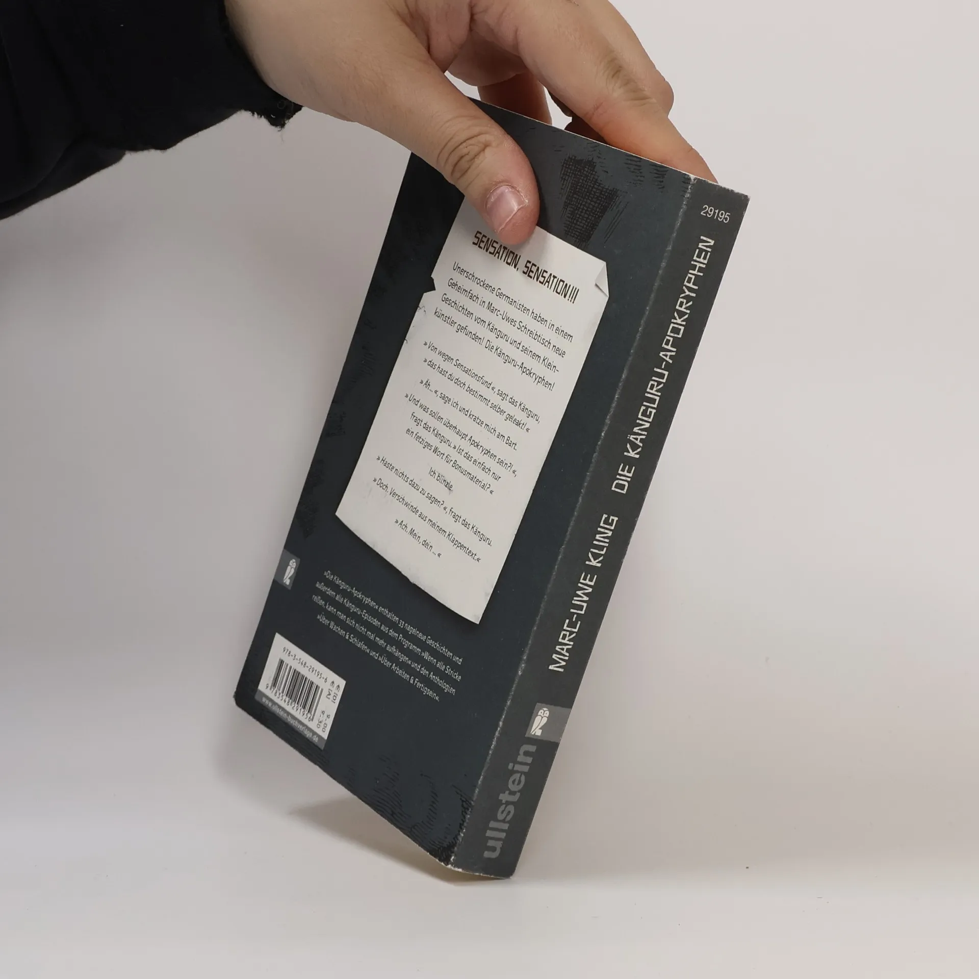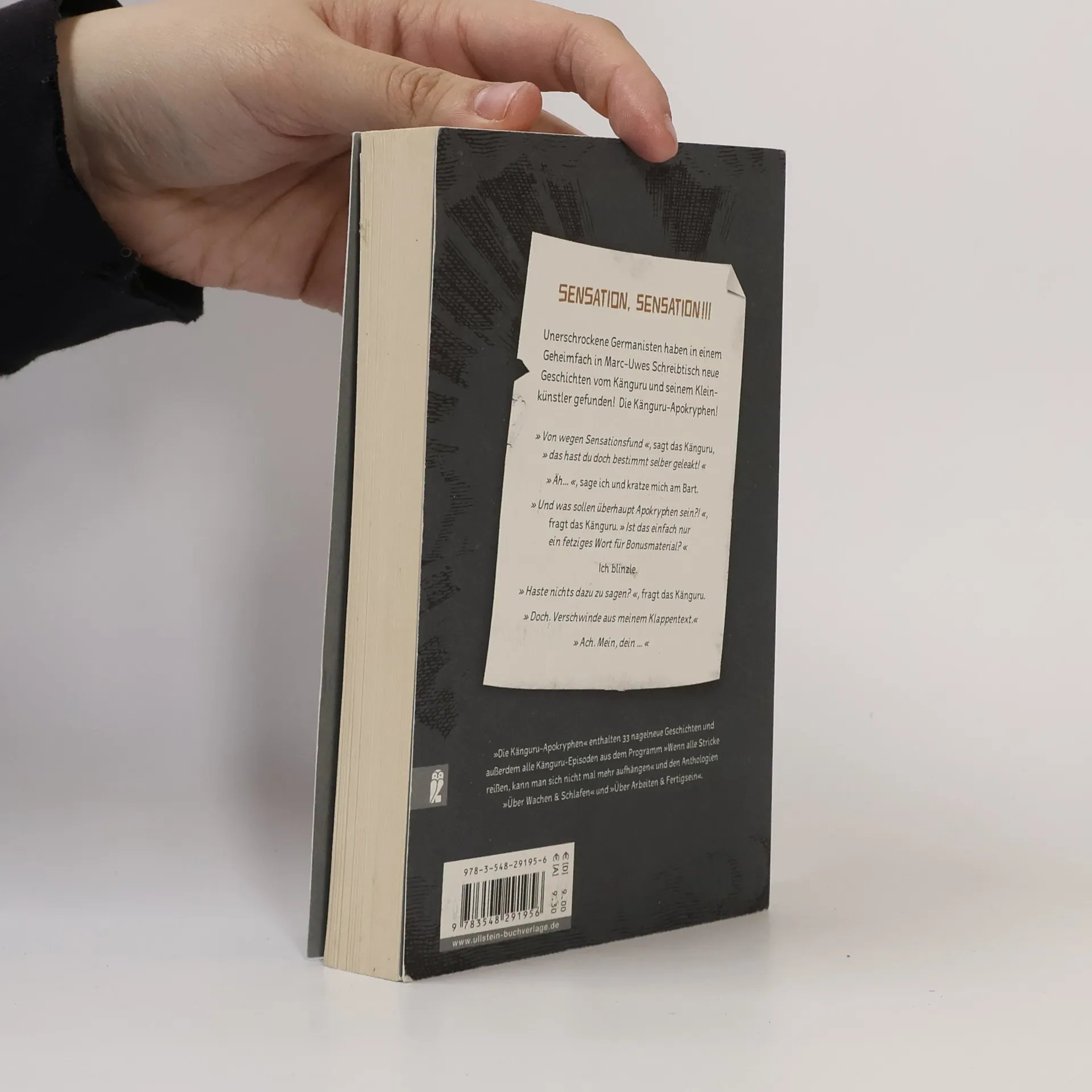 Sensation, Sensation: Archäologen haben in einem Geheimfach in Marc-Uwes Schreibtisch neue Geschichten vom Känguru und seinem Kleinkünstler gefunden! Dies ist nicht die Fortsetzung der Fortsetzung der Fortsetzung der Känguru-Chroniken. Triologie bleibt Triologie. Aber ein anständiger Kleinkünstler hat natürlich eine Zugabe vorbereitet. »Die Känguru-Apokryphen« versammeln zum ersten Mal alle weniger bekannten Eskapaden des dynamischen Duos: Episoden, die zwar nicht im allgemein gültigen Hochkanon der »Känguru-Trilogie« vertreten, aber ebenso witzig sind. Geschichten aus Anthologien, Live-Programmen ... und aus besagtem Geheimfach.