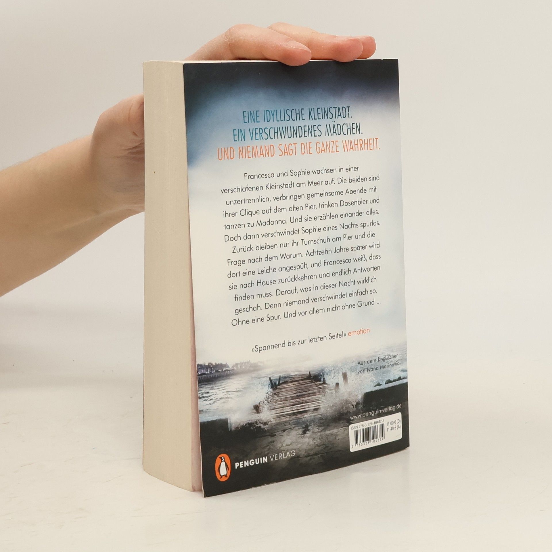 Eine raue Küstenlandschaft und ein fast vergessener Mordfall sorgen für Spannung bis zur letzten Seite. Mit ihrem ersten Thriller schaffte es Claire Douglas auch in Deutschland sofort auf der Bestsellerliste. Ein Ort voller Erinnerungen. Ein Ort voller Lügen. Francesca und Sophie wachsen in einer verschlafenen Kleinstadt am Meer auf. Die beiden sind unzertrennlich, verbringen gemeinsame Abende mit ihrer Clique auf dem alten Pier, trinken Dosenbier und tanzen zu Madonna. Und sie erzählen einander alles. Doch dann verschwindet Sophie eines Nachts spurlos. Zurück bleiben nur ihr Turnschuh am Pier und die Frage nach dem Warum. Achtzehn Jahre später wird dort eine Leiche angespült, und Francesca weiß, dass sie nach Hause zurückkehren und endlich Antworten finden muss. Darauf, was in dieser Nacht wirklich geschah. Denn niemand verschwindet einfach so. Ohne eine Spur. Und vor allem nicht ohne Grund ...