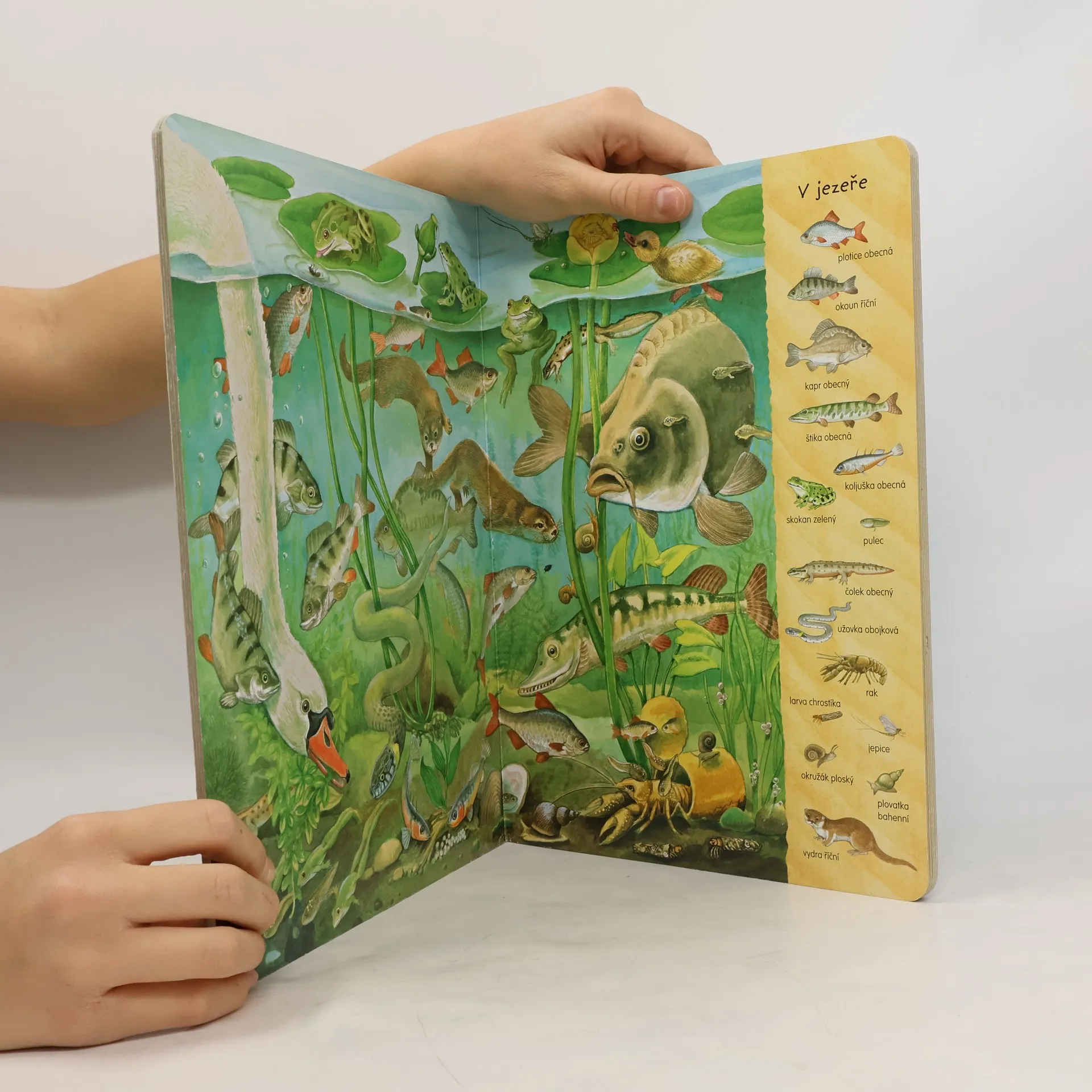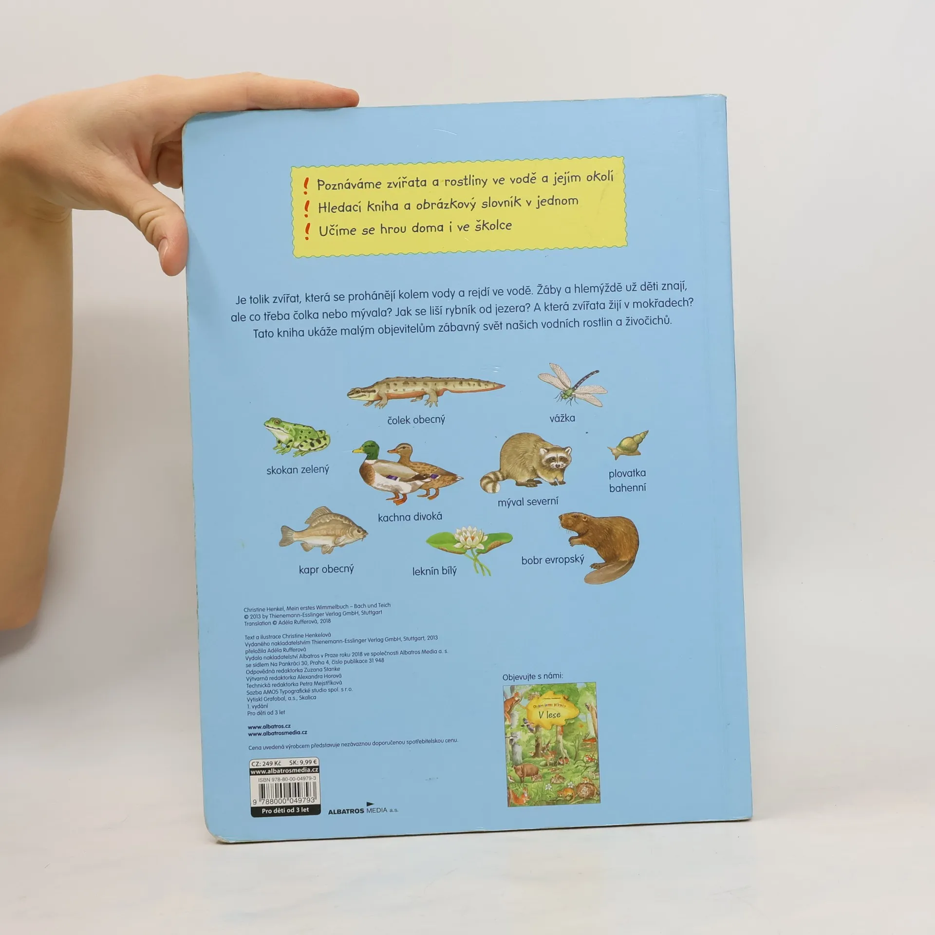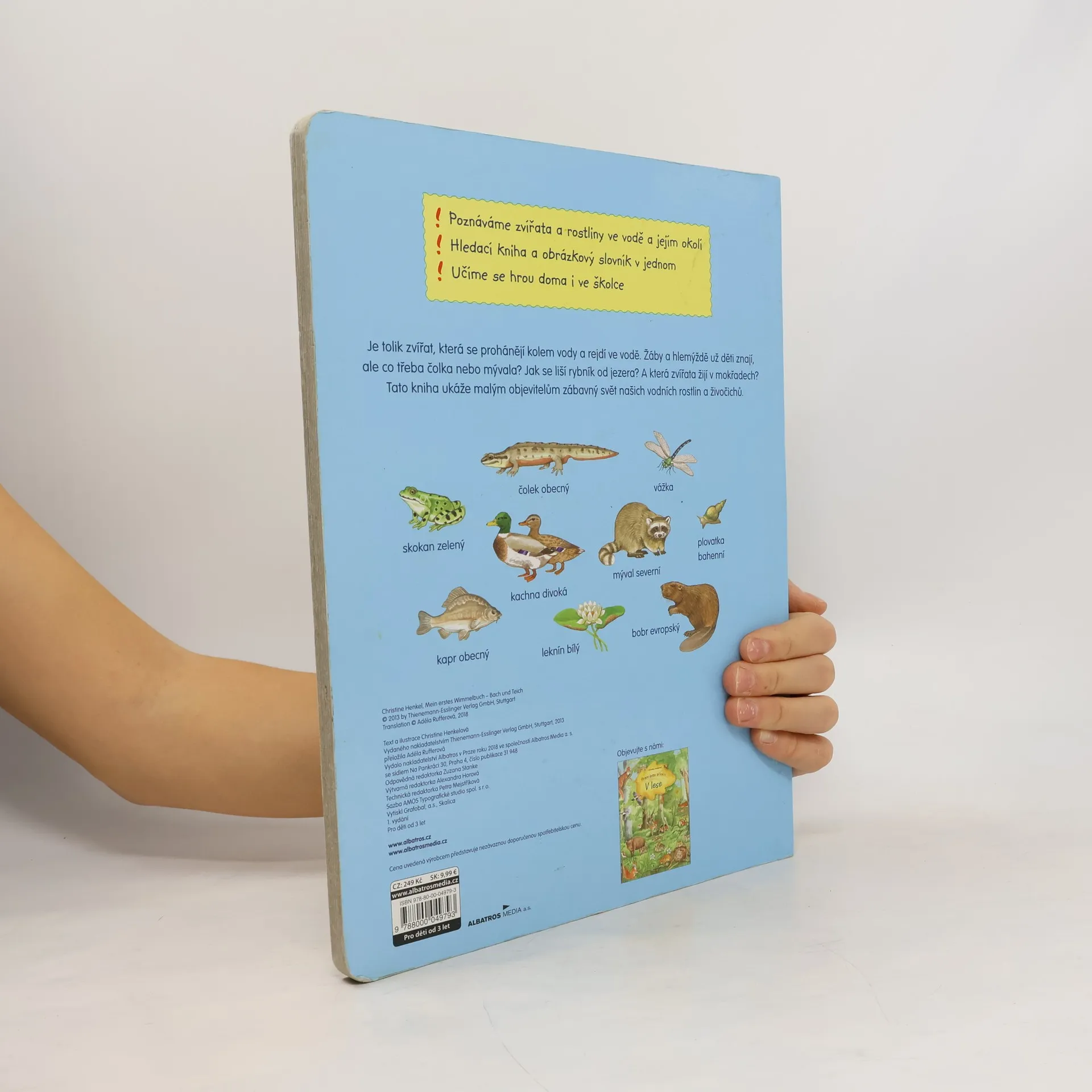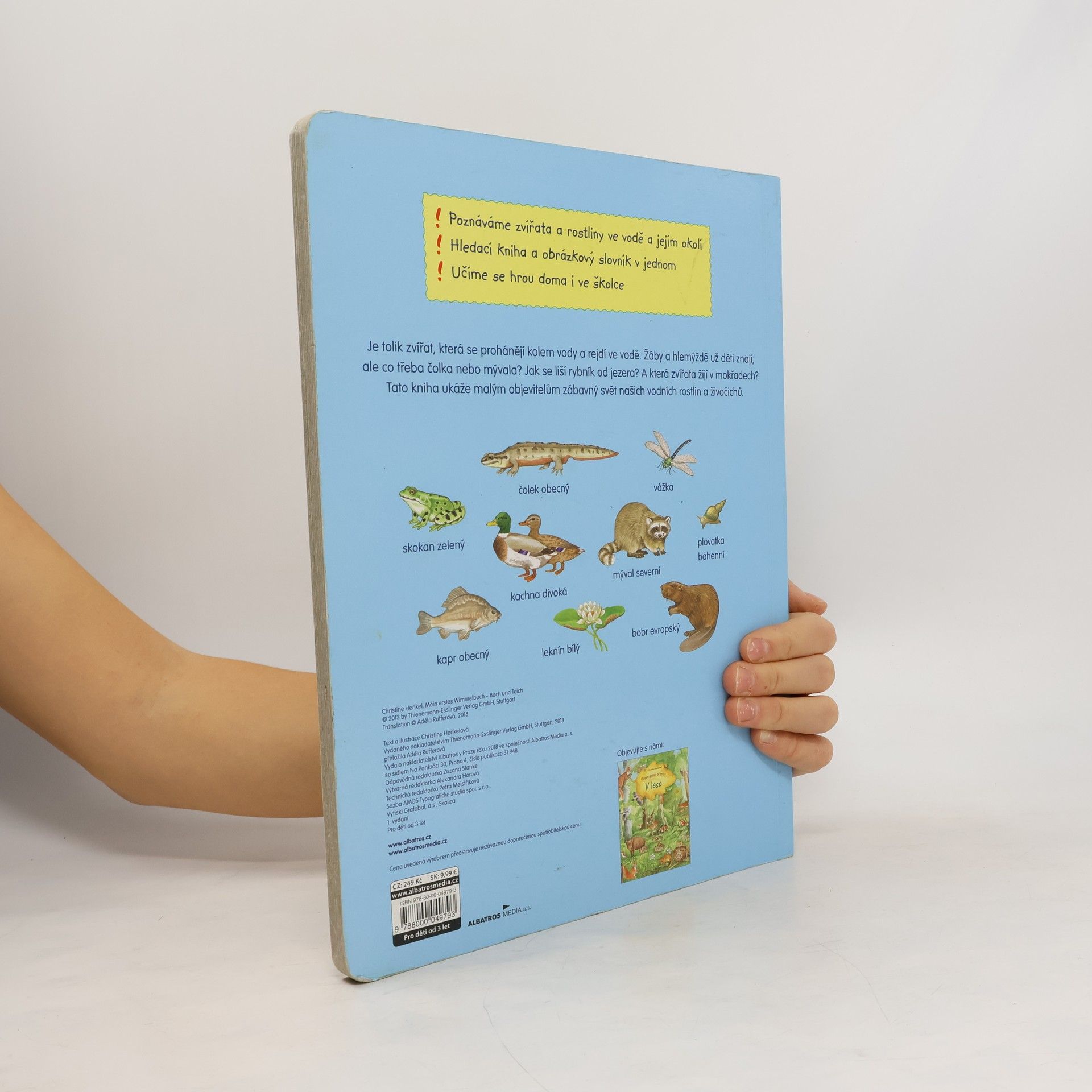 Je tolik zvířat, která se prohánějí kolem vody a rejdí ve vodě. Žáby a hlemýždě už děti znají, ale co třeba čolka nebo mývala? Jak se liší rybník od jezera? A která zvířata žijí v mokřadech? Tato kniha ukáže malým objevitelům zábavný svět našich vodních rostlin a živočichů.