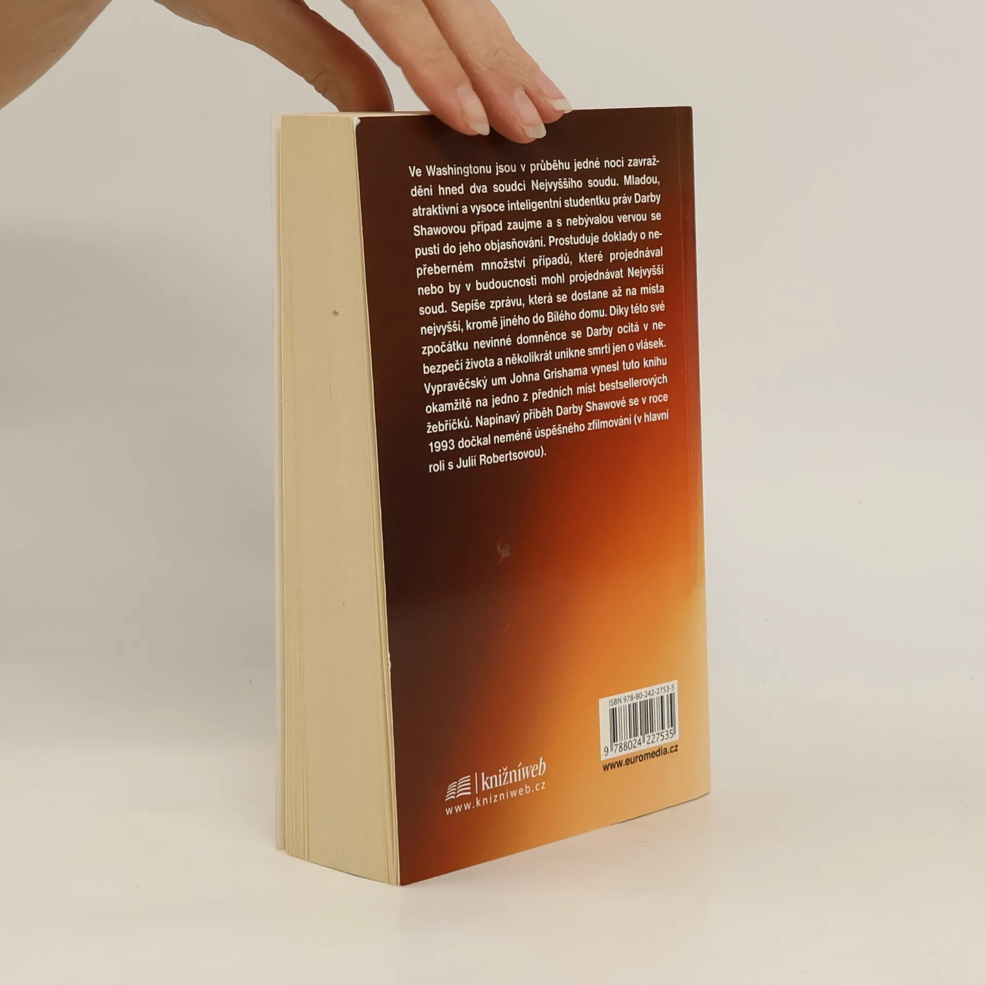 Ve Washingtonu jsou v průběhu jedné noci zavražděni hned dva soudci Nejvyššího soudu. Mladou, atraktivní a vysoce inteligentní studentku práv Darby Shawovou případ zaujme a s nebývalou vervou se pustí do jeho objasňování. Prostuduje doklady o nepřeberném množství případů, které projednával nebo by v budoucnosti mohl projednávat Nejvyšší soud. Sepíše zprávu, která se dostane až na místa nejvyšší, kromě jiného do Bílého domu. Díky této své zpočátku nevinné domněnce se Darby ocitá v nebezpečí života a několikrát unikne smrti jen o vlásek. Vypravěčský um Johna Grishama vynesl tuto knihu okamžitě na jedno z předních míst bestsellerových žebříčků. Napínavý příběh Darby Shawové se v roce 1993 dočkal neméně úspěšného zfilmování (v hlavní roli s Julií Robertsovou).