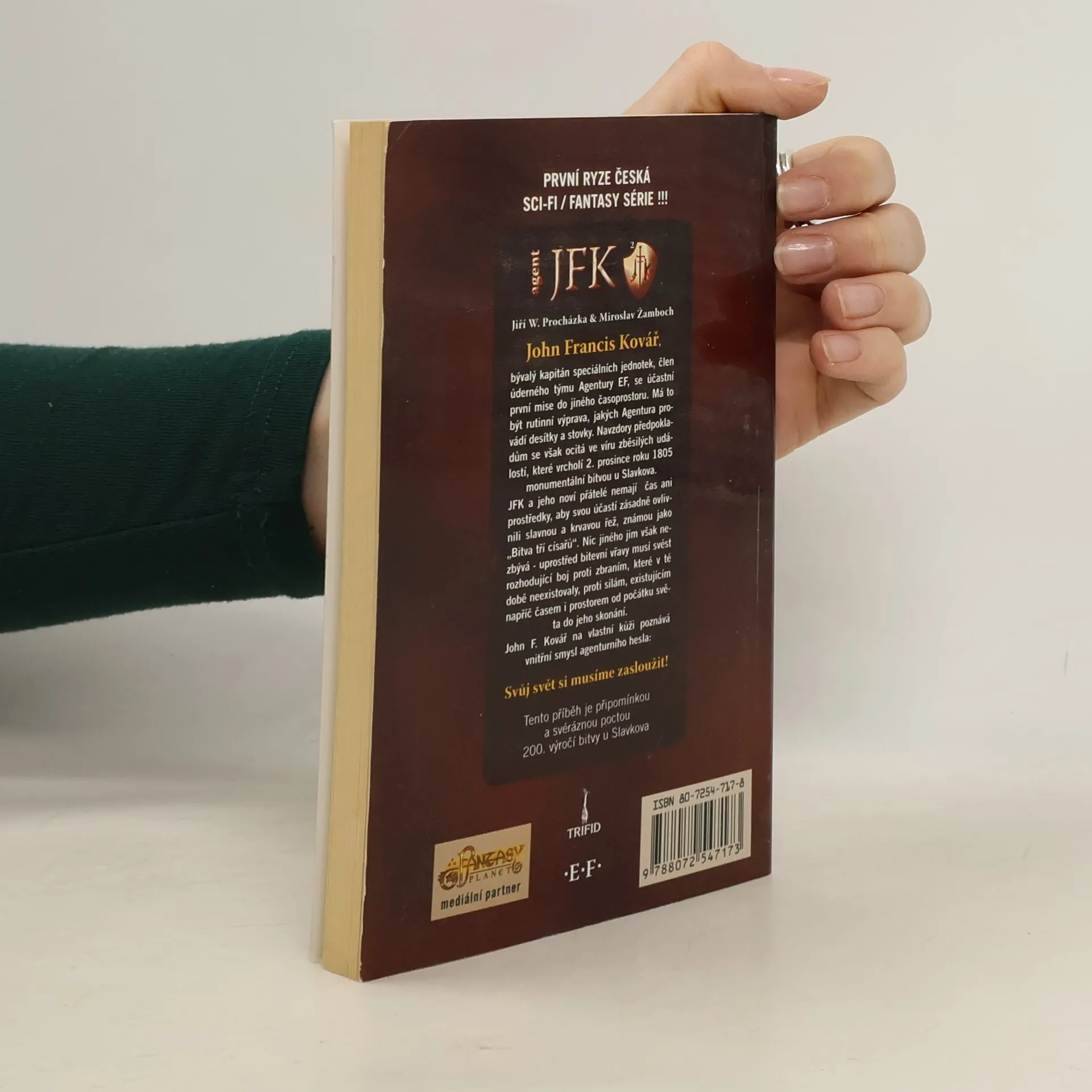 John Francis Kovář, bývalý kapitán speciálních jednotek, člen úderného týmu Agentury EF se účastní první mise do jiného časoprostoru. Má to být rutinní výprava, jakých Agentura provádí desítky a stovky. Navzdory předpokladům se však se ocitá ve víru zběsilých událostí, které vrcholí 2. prosince roku 1805 monumentální bitvou u Slavkova. JFK a jeho noví přátelé nemají čas ani prostředky, aby svou účastí zásadně ovlivnili slavnou a krvavou řež, známou jako „Bitva tří císařů“. Nic jiného jim však nezbývá – uprostřed bitevní vřavy musí svést rozhodující boj proti zbraním, které v té době neexistovaly, proti silám existujícím napříč časem i prostorem od počátku světa do jeho skonání. John F. Kovář na vlastní kůži poznává vnitřní smysl agenturního hesla: Svůj svět si musíme zasloužit! Tento příběh je připomínkou a svéráznou poctou 200. výročí bitvy u Slavkova.