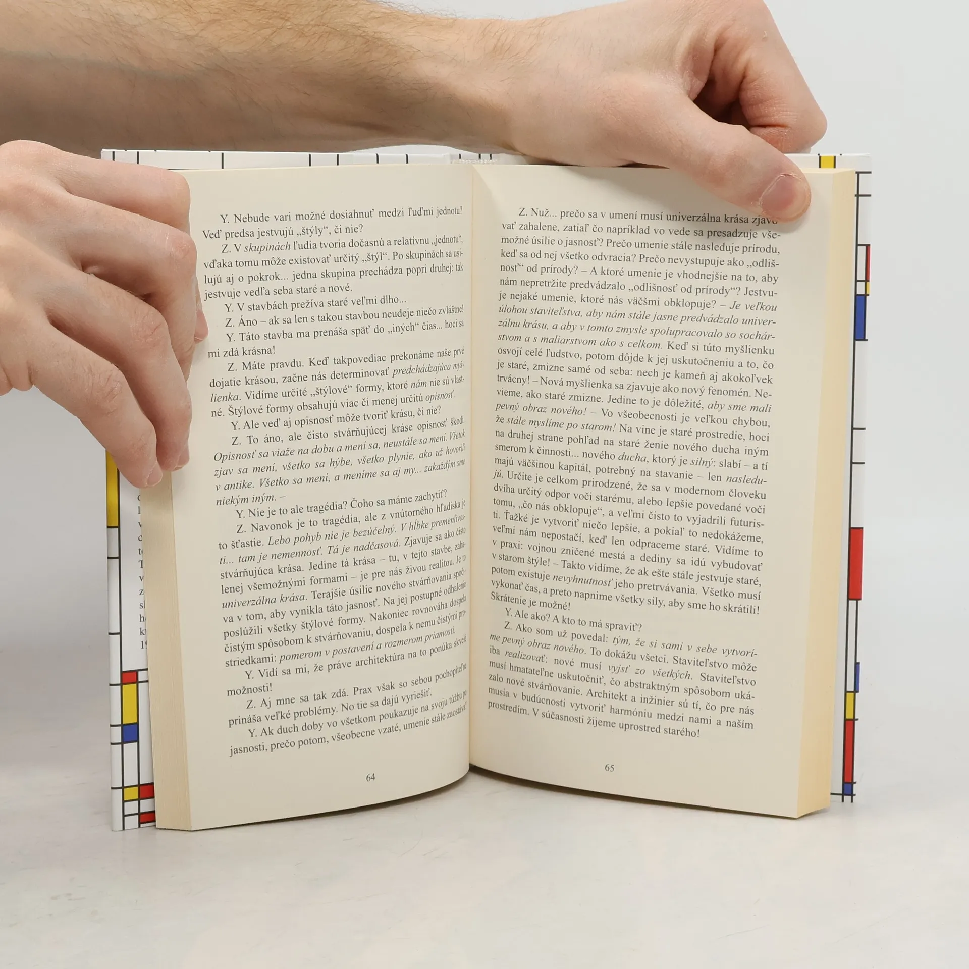 Svetoznámy výtvarný umelec Piet Mondrian (pôvodným menom Pieter Cornelis Mondriaan, 7. 3. 1872, Amersfoort – 1. 2. 1944, New York), priekopník abstraktnej maľby, napísal počas svojho plodného života rad teoretických článkov a esejí, osvetľujúcich princípy „nového stvárňovania“ či „neoplasticizmu“ – výtvarnej avantgardy, ktorá vznikla okolo nizozemského umeleckého časopisu De Stijl (1917-1931). Obdobie medzi svetovými vojnami strávil v Paríži, kde pod vplyvom výtvarného kubizmu a módnej teozofie rozvíjal a vo svojej výtvarnej tvorbe do dokonalosti doviedol princípy abstrakcie. Vo svojich príležitostných článkoch sa vyjadroval okrem výtvarného umenia aj k súčasnej hudbe, architektúre a urbanistike, a krátky čas sa takisto venoval literárnemu experimentovaniu. Tesne pred druhou svetovou vojnou emigroval do Londýna a potom do New Yorku, kde zomrel ako svetovo uznávaný umelec. Prvý slovenský výber z Mondrianovho esejistického a literárneho diela prináša tú jeho časť, ktorá vznikla v čase od roku 1914 do roku 1938 v autorovom rodnom jazyku.