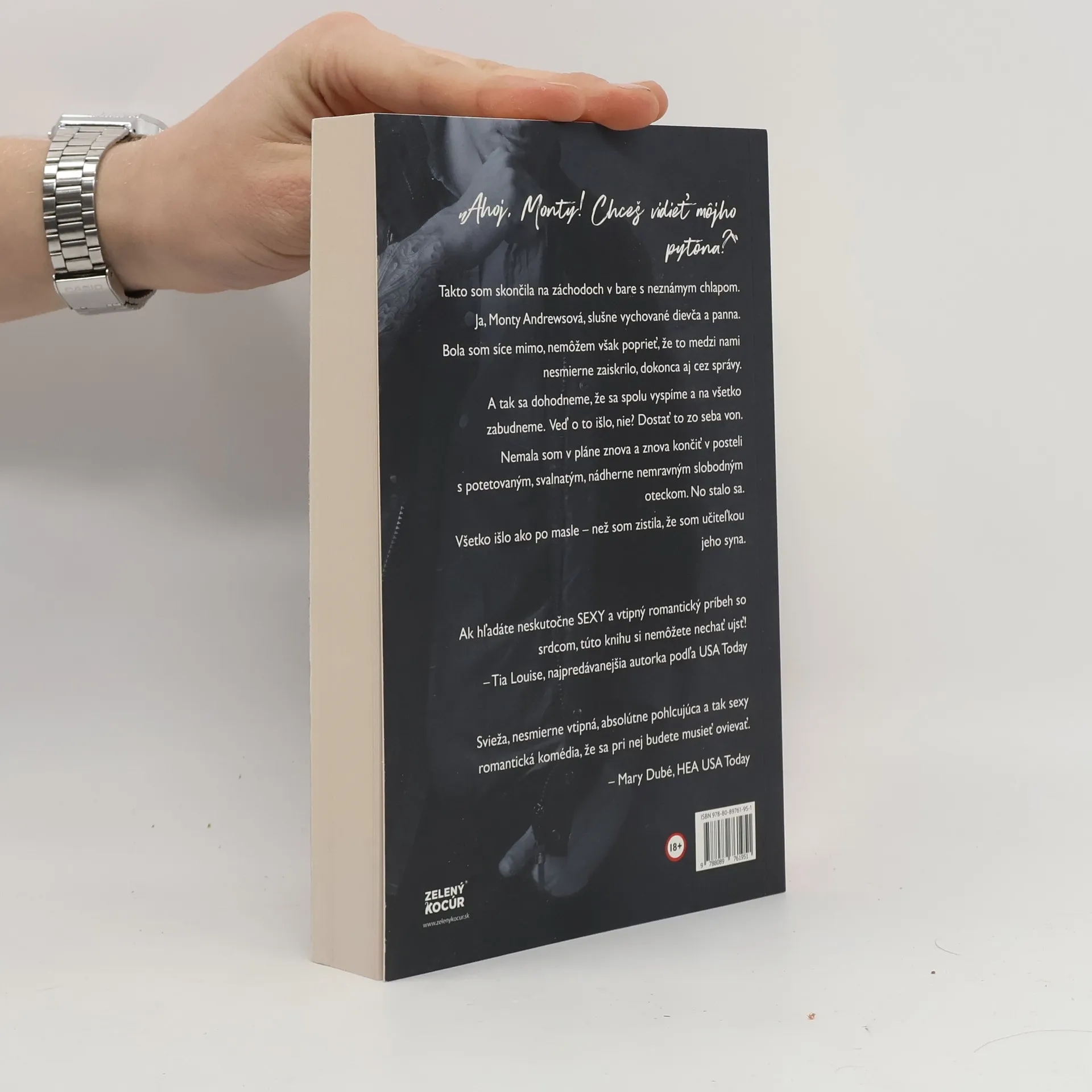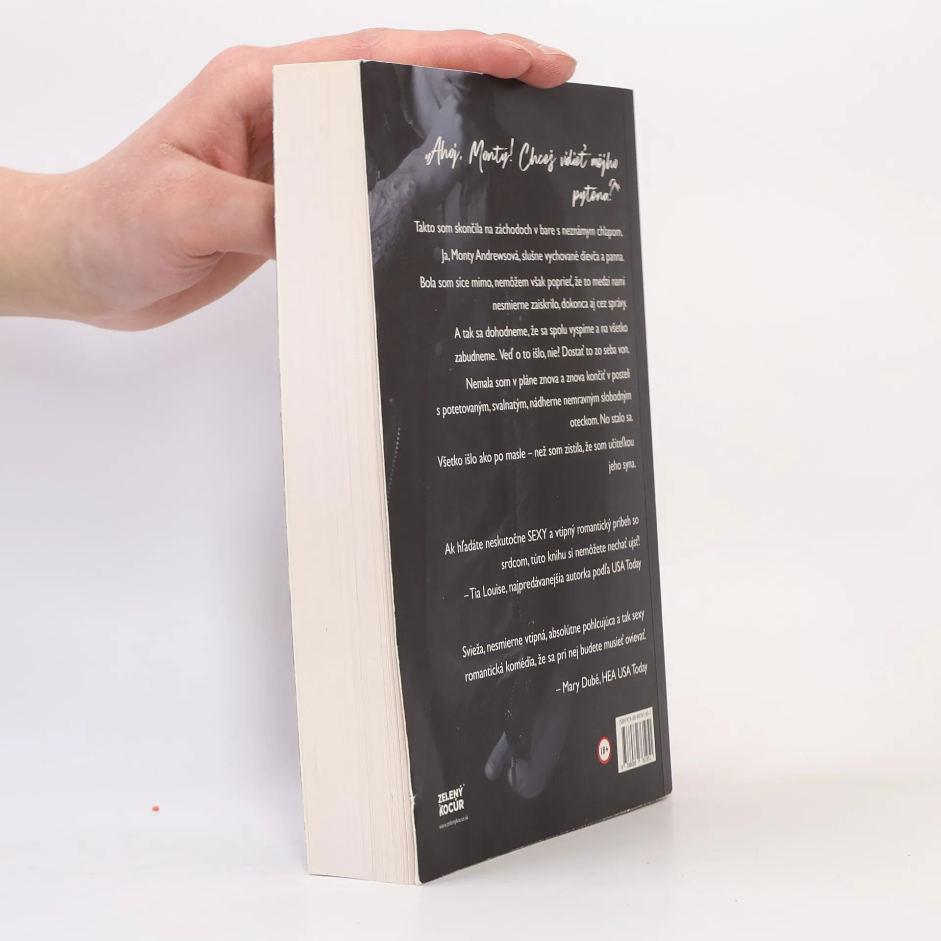 Jedna noc s jeho pytónom mi nestačila... „Ahoj, Monty! Chceš vidieť môjho pytóna?“ Takto som skončila na záchodoch v bare s neznámym chlapom. Ja, Monty Andrewsová, slušne vychované dievča a panna. Bola som síce mimo, nemôžem však poprieť, že to medzi nami nesmierne zaiskrilo, dokonca aj cez správy. A tak sa dohodneme, že sa spolu vyspíme a na všetko zabudneme. Veď o to išlo, nie? Dostať to zo seba von. Nemala som v pláne znova a znova končiť v posteli s potetovaným, svalnatým, nádherne nemravným slobodným oteckom. No stalo sa. Všetko išlo ako po masle – než som zistila, že som učiteľka jeho syna.