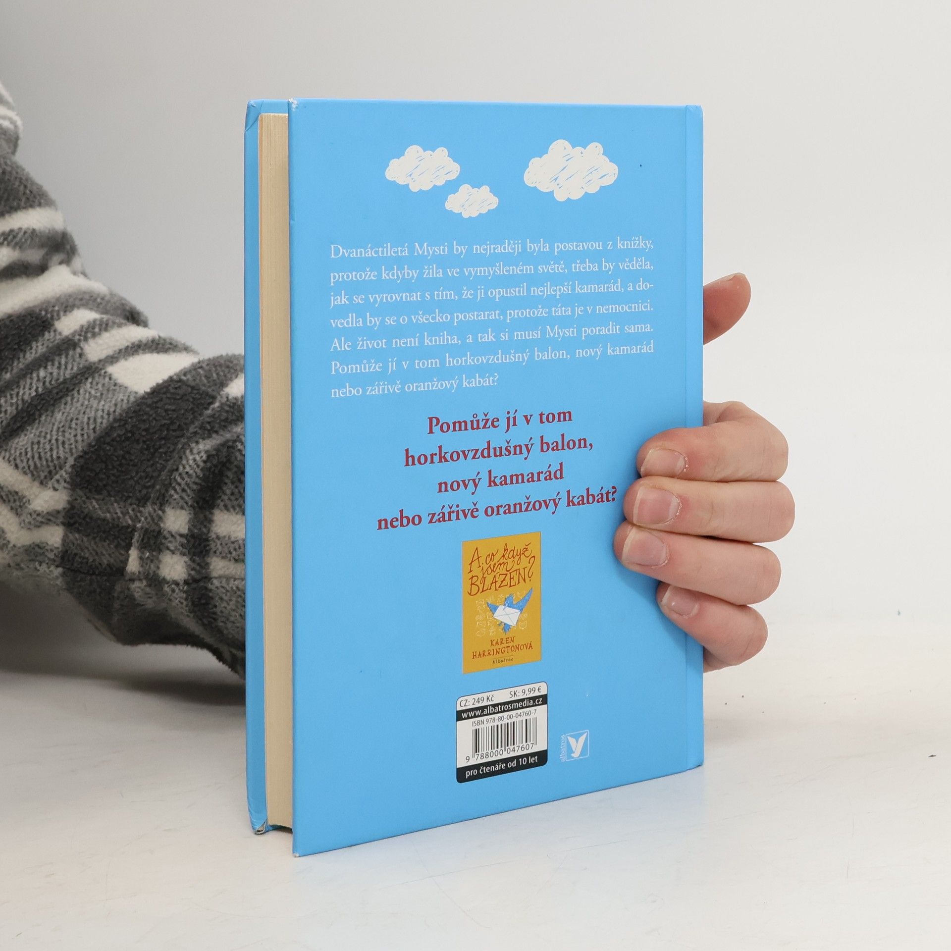 Najde Mysti odvahu změnit svůj život? Dvanáctiletá Mysti by nejraději byla postavou z knížky, protože kdyby žila ve vymyšleném světě, třeba by věděla, jak se vyrovnat s tím, že ji opustil nejlepší kamarád, a dovedla by se o všecko postarat, protože táta je v nemocnici. Ale život není kniha, a tak si musí Mysti poradit sama. Pomůže jí v tom horkovzdušný balon, nový kamarád nebo zářivě oranžový kabát?
