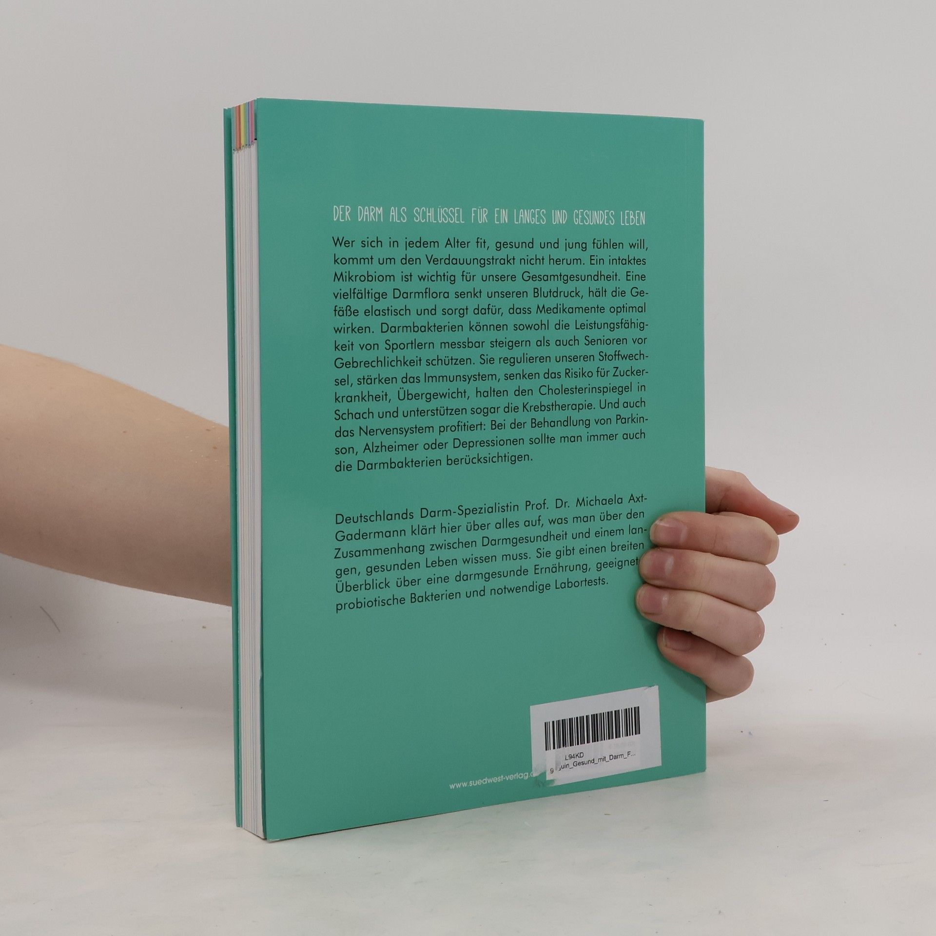 Der Darm als Schlüssel für ein langes und gesundes Leben Wer sich in jedem Alter fit, gesund und jung fühlen will, kommt um den Verdauungstrakt nicht herum. Ein gesundes Mikrobiom ist wichtig für unsere Gesamtgesundheit. Eine vielfältige Darmflora senkt unseren Blutdruck, hält die Gefäße elastisch und sorgt dafür, dass Medikamente optimal wirken. Darmbakterien können sowohl die Leistungsfähigkeit von Sportlern messbar steigern als auch Senioren vor Gebrechlichkeit schützen. Sie regulieren unseren Stoffwechsel, stärken das Immunsystem, senken das Risiko für Zuckerkrankheit, Übergewicht, halten den Cholesterinspiegel in Schach und unterstützen sogar die Krebstherapie. Und auch das Nervensystem profitiert: Bei der Behandlung von Parkinson, Alzheimer oder Depressionen sollte man immer auch die Darmbakterien berücksichtigen. Deutschlands Darm-Spezialistin Prof. Dr. Michaela Axt-Gadermann klärt hier über alles auf, was man über den Zusammenhang zwischen Darmgesundheit und einem langen, gesunden Leben wissen muss. Sie gibt einen breiten Überblick über eine darmgesunde Ernährung, geeignete probiotische Bakterien und notwendige Labortests. Ausstattung: mit ca. 60 farbigen Abbildungen