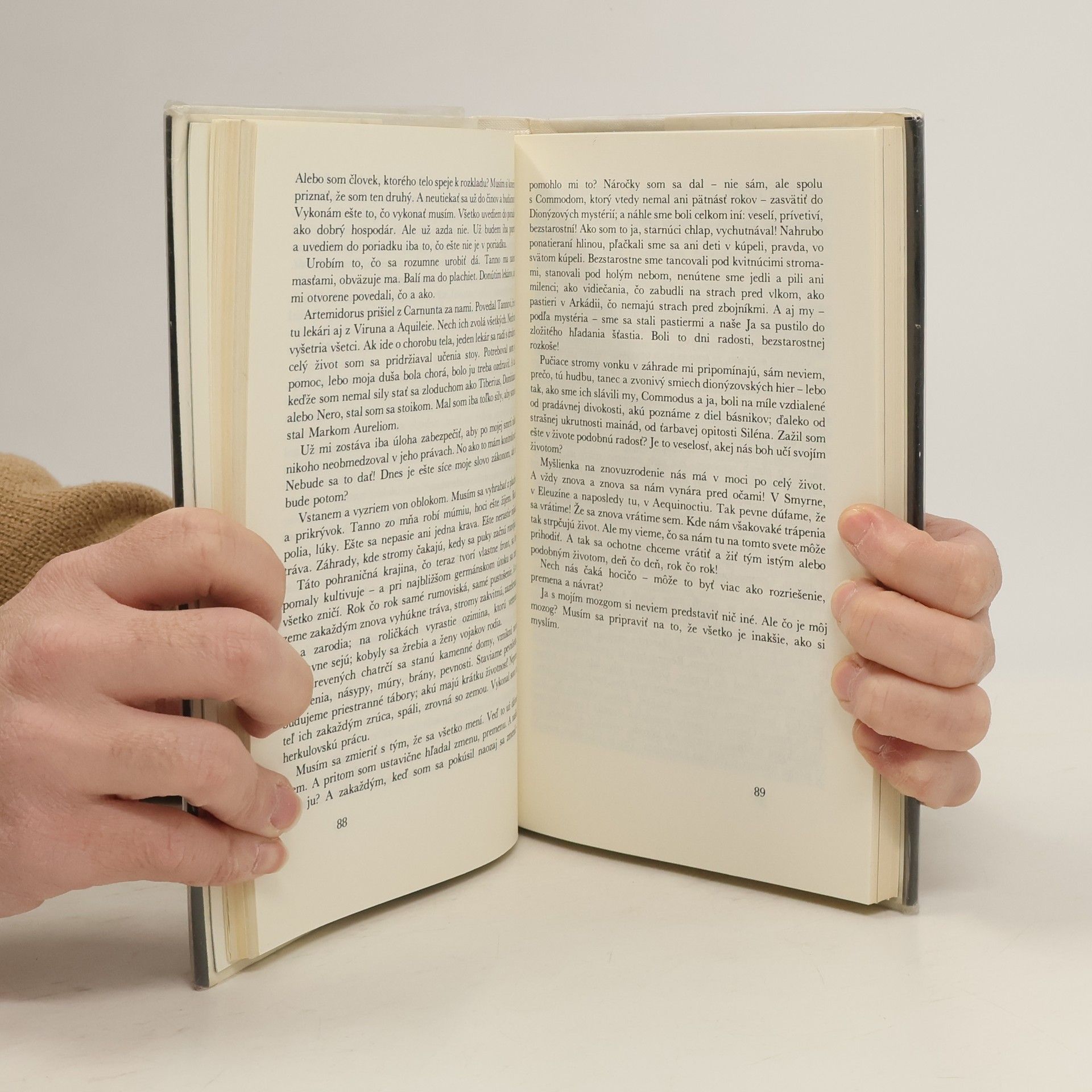 Zaujímavo podaný portrét jedného z najznámejších rímskych cisárov. Autor vám prostredníctvom rozprávania podá najmä posledných sedem dní života Marca Aurelia, ktoré zobrazil "akoby v žánri dokumentaristickej fikcie." Využíval pritom napríklad aj podrobné záznamy tajného cisárskeho pisára Peloplatona.
