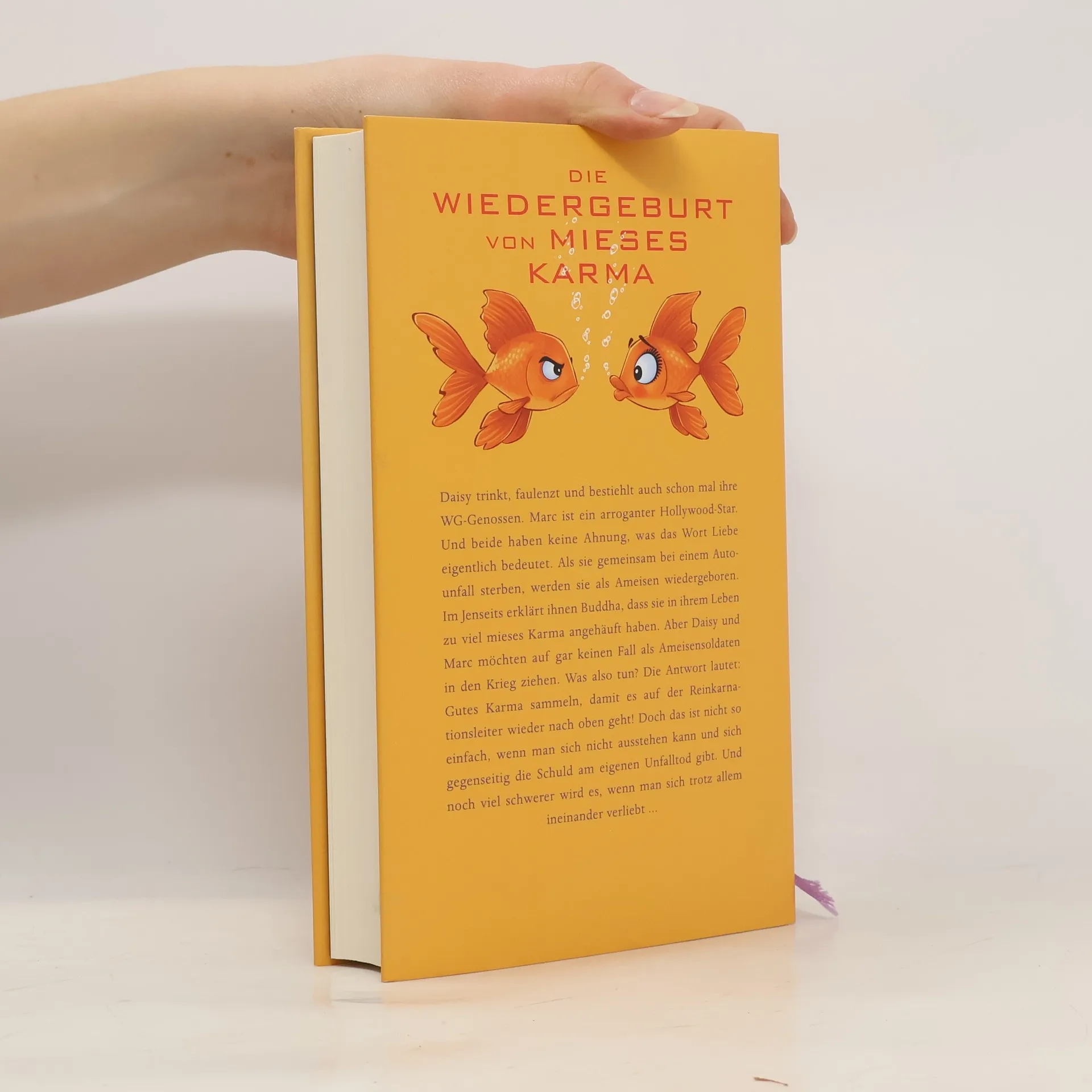 Die Wiedergeburt von «Mieses Karma» Die Gelegenheitsschauspielerin Daisy Becker trinkt, raucht und bestiehlt auch schon mal ihre WG-Genossen. Mit Mitte zwanzig hat sie noch immer keine Ahnung, was sie mit ihrem Leben eigentlich anfangen will. Noch viel weniger weiß sie, was das Wort „Liebe“ eigentlich bedeutet. Und sie wird es in diesem Leben auch nicht mehr erfahren, gerät sie doch in einen tödlichen Autounfall mit dem arroganten Hollywoodstar Marc Barton. Daisy und Marc werden als Ameisen wiedergeboren und erfahren von Buddha, dass sie in ihrem Leben zu viel mieses Karma angesammelt haben. Allerdings haben die beiden nur wenig Lust, fortan als Ameisensoldaten in den Krieg zu ziehen. Außerdem wollen sie um jeden Preis verhindern, dass Daisys bester Freund, von dem sie erst jetzt erkennt, was sie für ihn empfindet, und Marcs Ehefrau ein Paar werden. Was also tun? Gutes Karma sammeln, um die Reinkarnationsleiter über die Stufen Goldfisch-Storch-Schnecke hochzuklettern und wieder zu Menschen zu werden! Doch das ist nicht so einfach, wenn man sich nicht ausstehen kann und sich gegenseitig die Schuld an dem Unfalltod gibt. Und noch viel schwerer wird es, wenn man sich trotz allem ineinander verliebt ... Für alle Fans des Millionensellers «Mieses Karma»: noch mehr Humor und Wahrheit von David Safier.