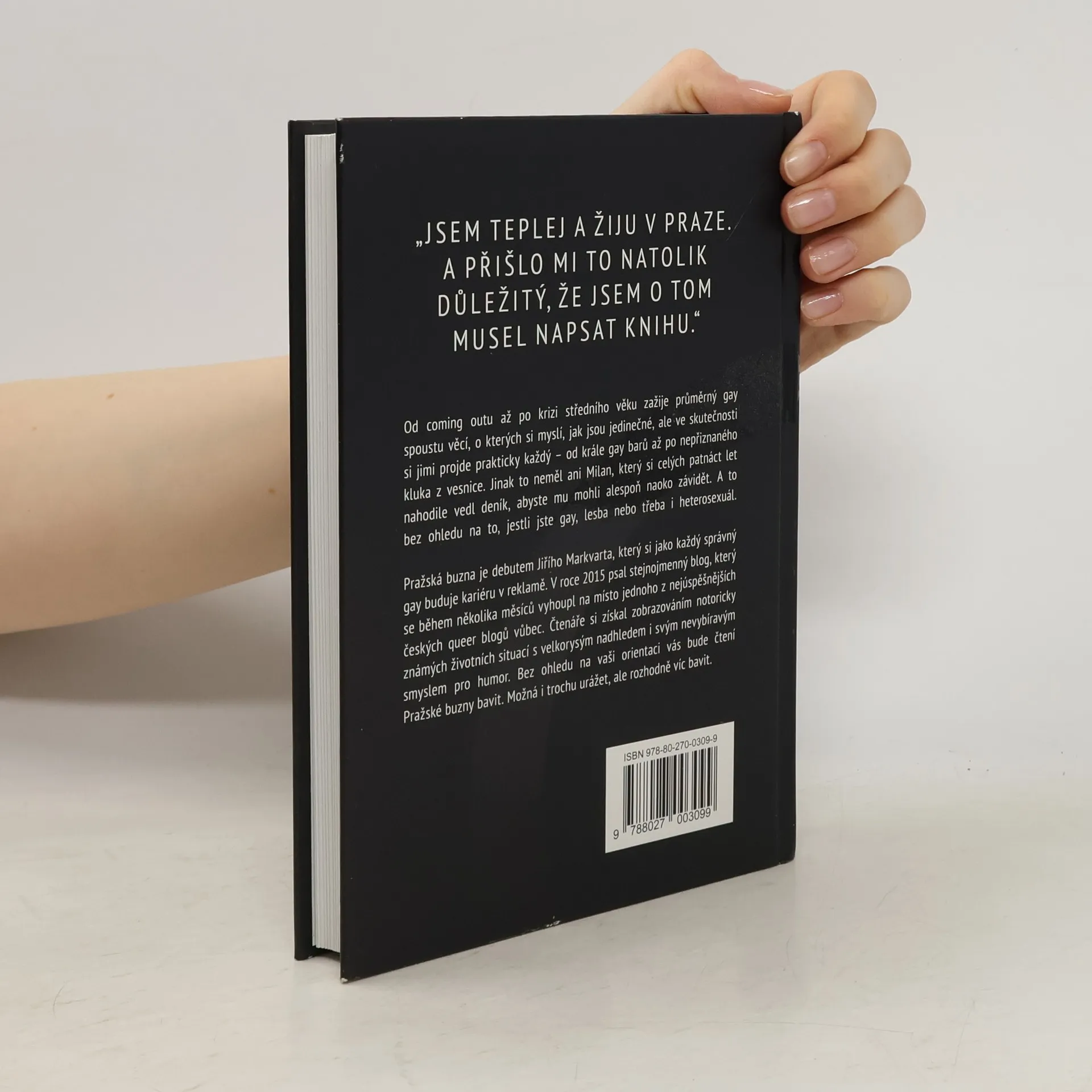 Od coming outu až po krizi středního věku zažije průměrný gay spoustu věcí, o kterých si myslí, jak jsou jedinečné, ale ve skutečnosti si jimi projde prakticky každý – od krále gay barů až po nepřiznaného kluka z vesnice. Jinak to neměl ani Milan, který si celých patnáct let nahodile vedl deník, abyste mu mohli alespoň naoko závidět. A to bez ohledu na to, jestli jste gay, lesba nebo třeba i heterosexuál. V takovém případě je pro vás v knize přichystán i přehled toho, co byste jako začínající buzna měli vědět, pro případ, že by vás konvenční heterosexuální život začal nudit. Pražská buzna je debutem Jiřího Markvarta, který si jako každý správný gay buduje kariéru v reklamě. V roce 2015 psal stejnojmenný blog, který se během několika měsíců vyhoupl na místo jednoho z nejúspěšnějších českých queer blogů vůbec. Čtenáře si získal zobrazováním notoricky známých životních situací s velkorysým nadhledem i svým nevybíravým smyslem pro humor. Bez ohledu na vaši orientaci vás bude čtení Pražské buzny bavit. Možná i trochu urážet, ale rozhodně víc bavit.