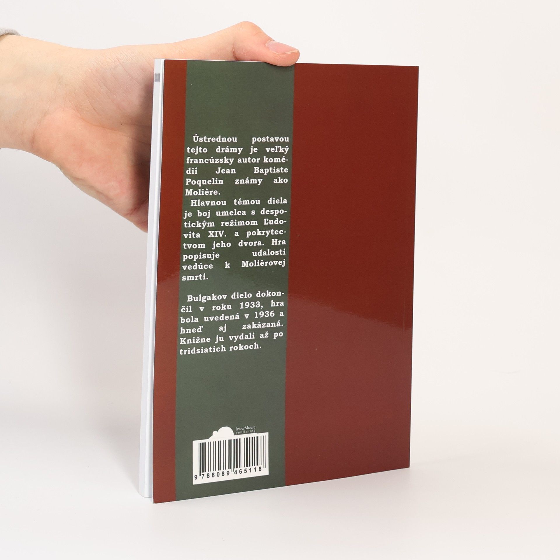 Ústrednou postavou tejto drámy je veľký francúzsky autor komédií Jean Baptiste Poquelin známy ako Moliere. Hlavnou témou diela je boj umelca s despotickým režimom Ľudovíta XIV. a pokrytectvom jeho dvora. Hra popisuje udalosti vedúce k Molierovej smrti.rnBulgakov dielo dokončil v roku 1933, hra bola uvedená v 1936 a hneď aj zakázaná. Knižne ju vydali až po tridsiatich rokoch.