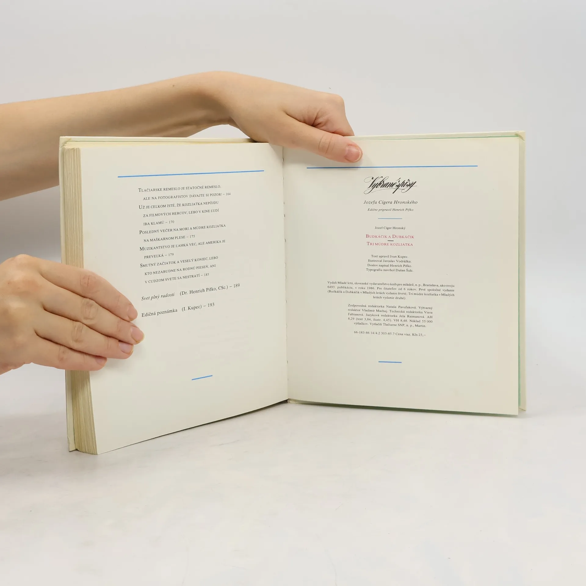 Skladem máme celkem knihy Budkáčik a Dubkáčik. Tri múdre kozliatka (1986).