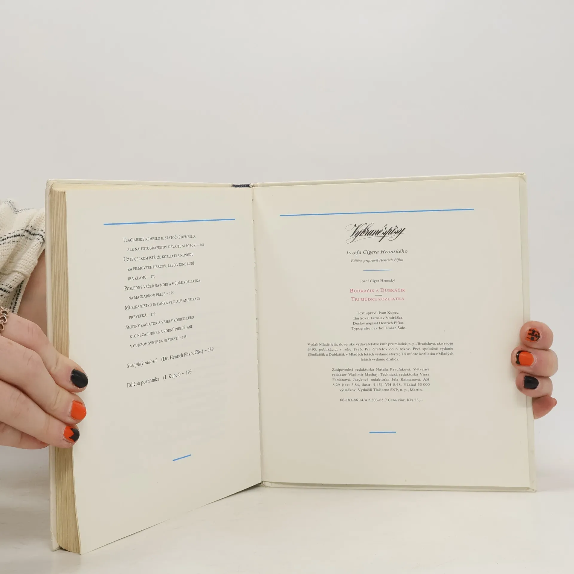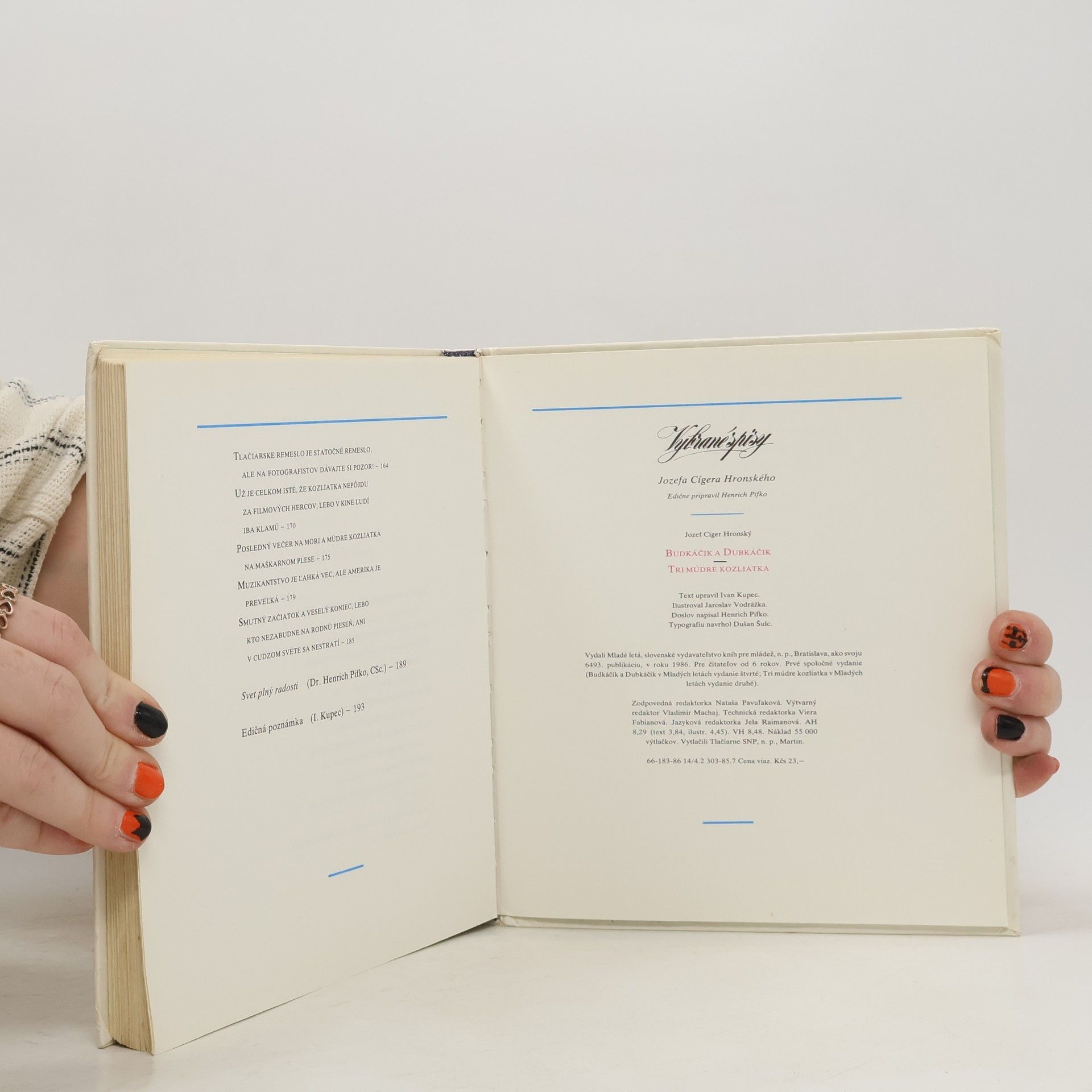 Skladem máme celkem knihy Budkáčik a Dubkáčik. Tri múdre kozliatka (1986).