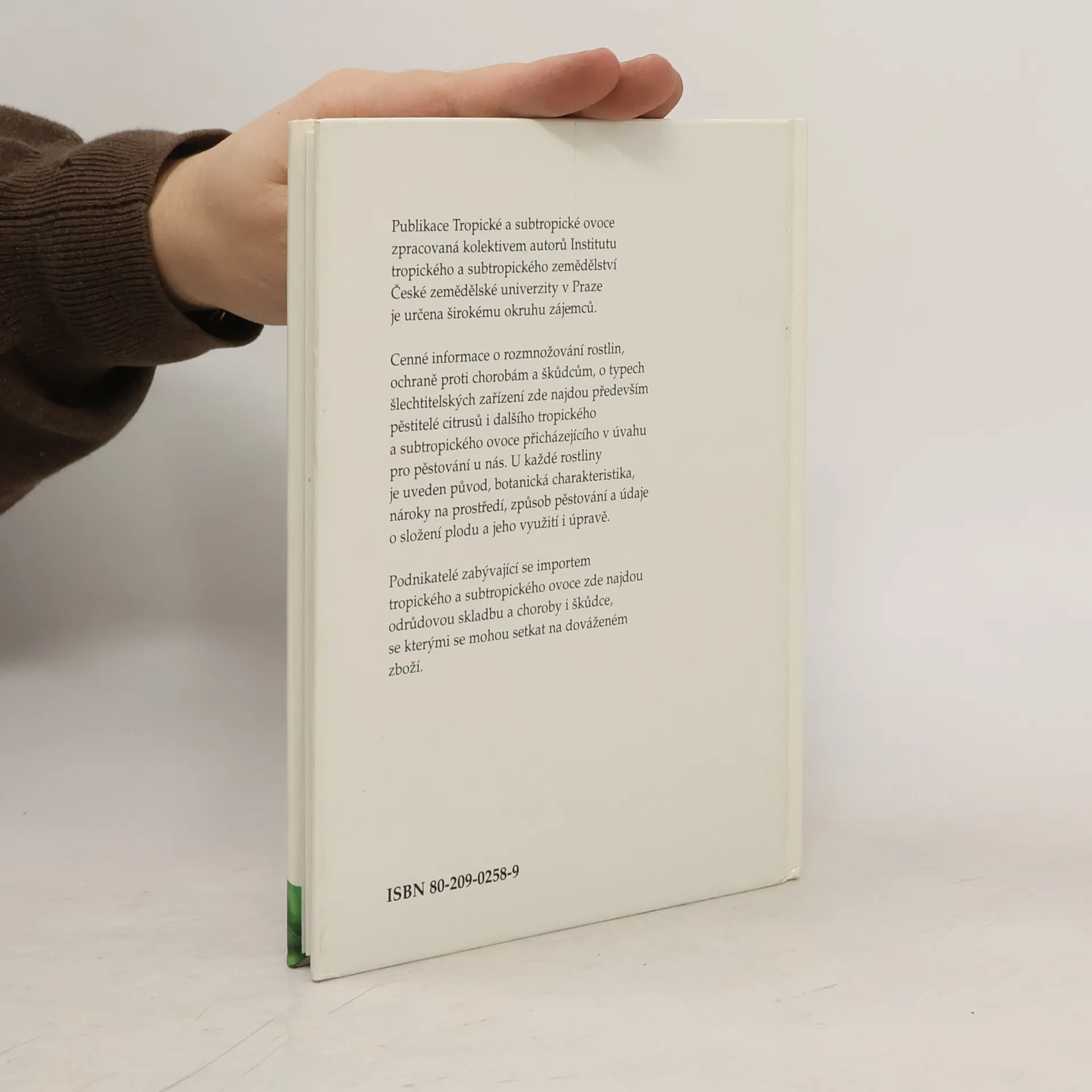 Cenné informace o nákupu, pěstování, rozmnožování, přesazování, škůdcích a chorobách exotického ovoce, o pěstitelských zařízení. V systematické části je popsáno asi 26 samostatných rodů.
