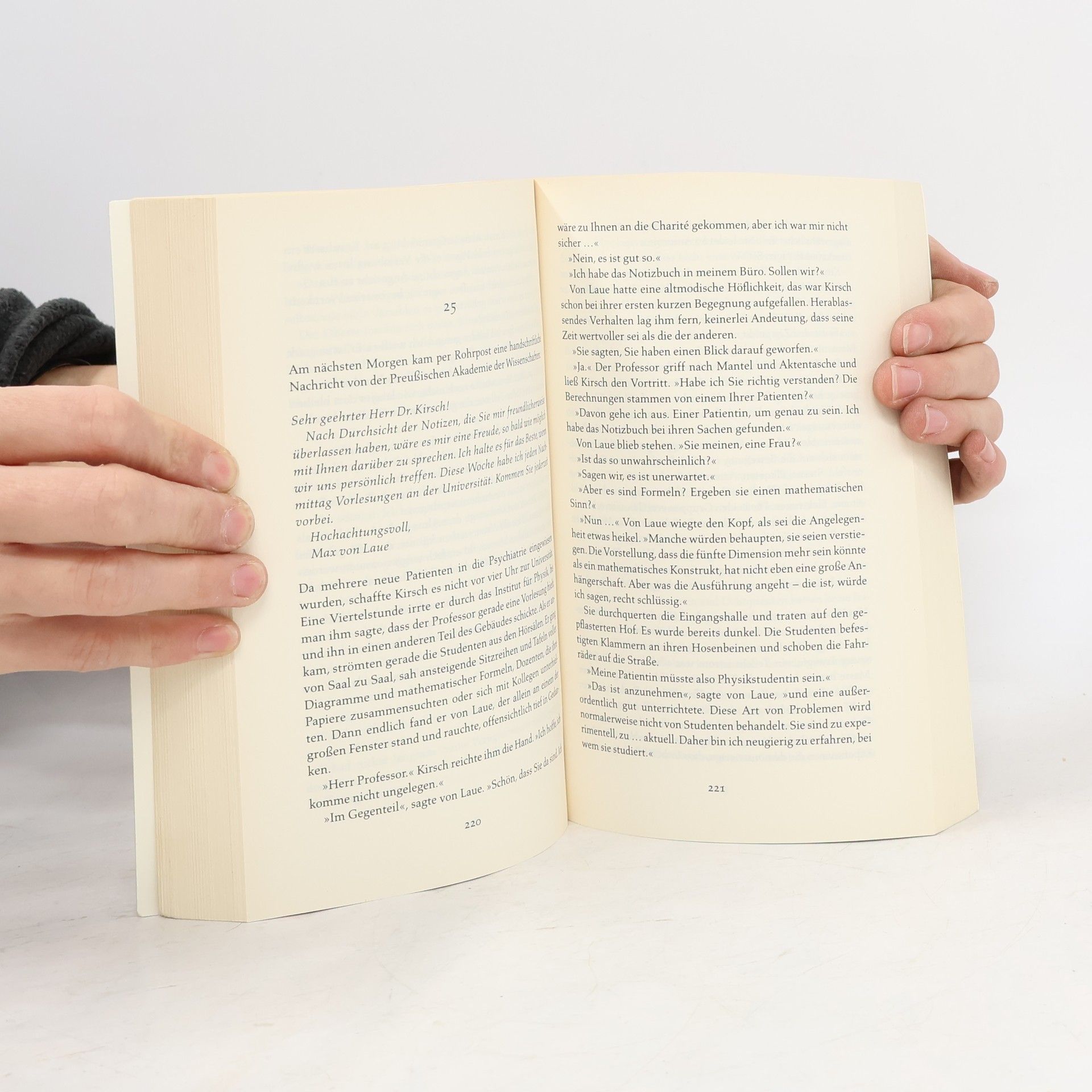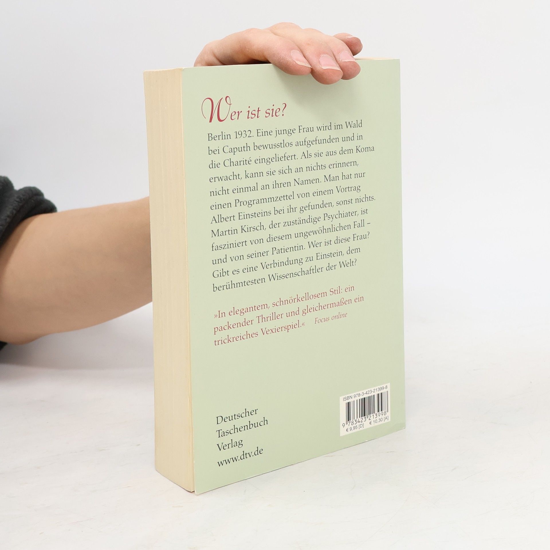 Welche Wahrheit ist gültig?  Berlin 1932. Eine junge Frau wird im Wald bei Caputh bewusstlos aufgefunden und in die Charité eingeliefert. Als sie aus dem Koma erwacht, kann sie sich an nichts erinnern, nicht einmal an ihren Namen. Bei ihr findet man nur einen Programmzettel von einem Vortrag Albert Einsteins. Martin Kirsch, der zuständige Psychiater, ist fasziniert von diesem ungewöhnlichen Fall – und von seiner Patientin. Wer ist diese Frau? Gibt es eine Verbindung zu Einstein? Seine Nachforschungen führen ihn nach Zürich und bis nach Serbien. Währenddessen ergreifen in Deutschland die Nazis die Macht ...