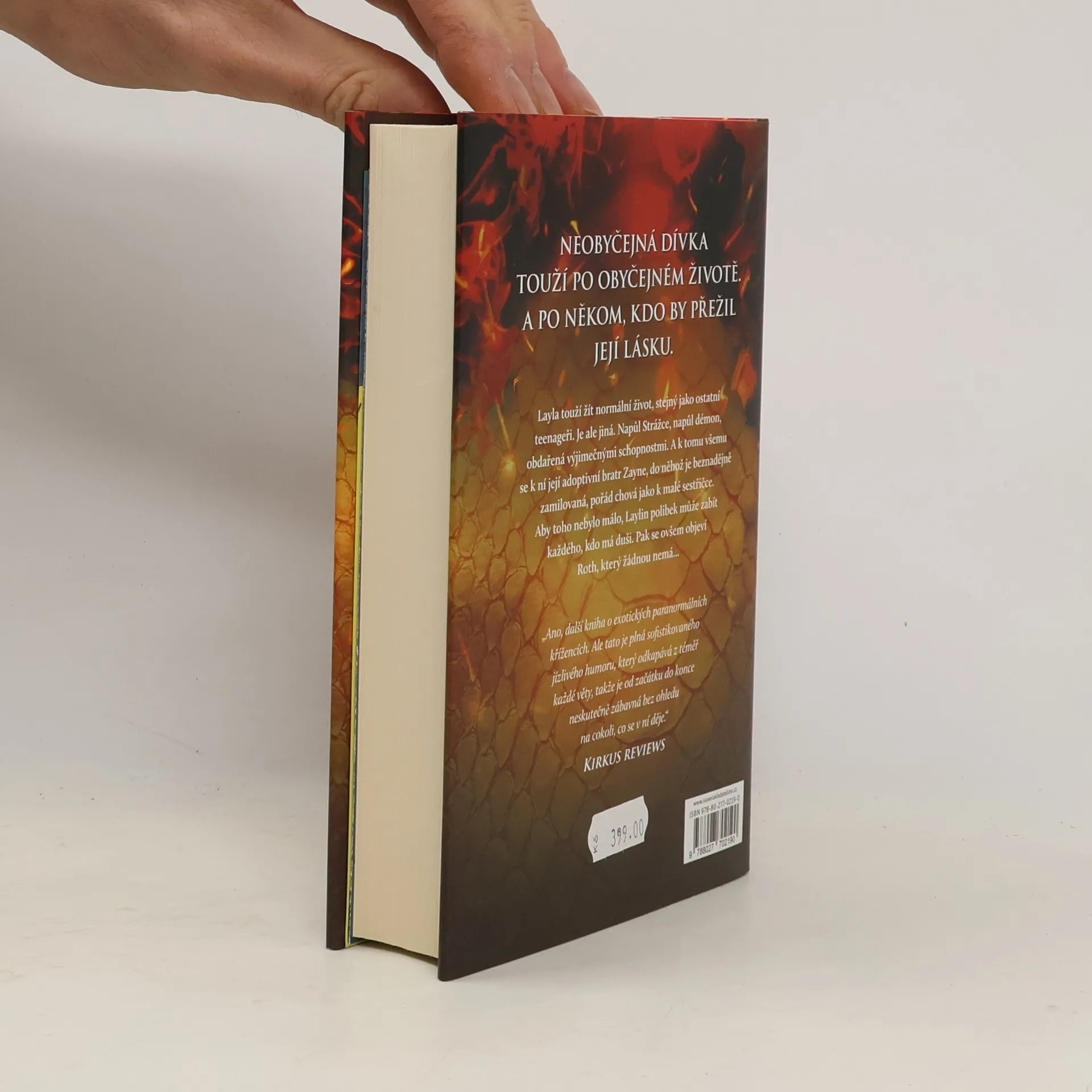Jediný polibek může zabít Layla touží vést normální život teenagera. Chce trávit čas ve škole s kamarády a chodit na rande. Je ale jiná než ostatní a její celoživotní láska, adoptivní bratr Zayne, s ní jedná jako s malou sestřičkou. Zayne je součástí klanu Strážců, kteří byli shůry pověřeni lovem démonů a obranou lidstva. Layla je napůl Strážce, napůl démon a je obdařena výjimečnými schopnostmi. Její polibek má navíc smrtící účinky na každého, kdo má duši. Na scénu vstupuje Roth, výřečný a sebevědomý démon, který Laylu vyvádí z míry, protože zná její nejhlubší tajemství. Roth je šarmantní, pohledný a sexy. Pro Laylu je proto čím dál obtížnější držet si ho od těla a nevěřit jeho slovům, která do jejího života vnášejí pochyby. Démoni navíc nemají duši… Layla stojí před obtížnou volbou, která se jí může stát osudnou. Starosti s polibkem jdou stranou ve chvíli, kdy se na obzoru začne rýsovat povstání démonů, které může narušit rovnováhu života na Zemi. A Layla ví, že musí udělat vše pro to, aby povstání zabránila, a to i za cenu oběti a zrady vlastní rodiny. První díl série Dark Elements.