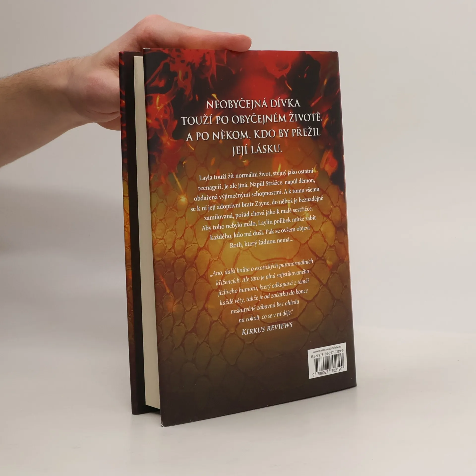 Jediný polibek může zabít Layla touží vést normální život teenagera. Chce trávit čas ve škole s kamarády a chodit na rande. Je ale jiná než ostatní a její celoživotní láska, adoptivní bratr Zayne, s ní jedná jako s malou sestřičkou. Zayne je součástí klanu Strážců, kteří byli shůry pověřeni lovem démonů a obranou lidstva. Layla je napůl Strážce, napůl démon a je obdařena výjimečnými schopnostmi. Její polibek má navíc smrtící účinky na každého, kdo má duši. Na scénu vstupuje Roth, výřečný a sebevědomý démon, který Laylu vyvádí z míry, protože zná její nejhlubší tajemství. Roth je šarmantní, pohledný a sexy. Pro Laylu je proto čím dál obtížnější držet si ho od těla a nevěřit jeho slovům, která do jejího života vnášejí pochyby. Démoni navíc nemají duši… Layla stojí před obtížnou volbou, která se jí může stát osudnou. Starosti s polibkem jdou stranou ve chvíli, kdy se na obzoru začne rýsovat povstání démonů, které může narušit rovnováhu života na Zemi. A Layla ví, že musí udělat vše pro to, aby povstání zabránila, a to i za cenu oběti a zrady vlastní rodiny. První díl série Dark Elements.