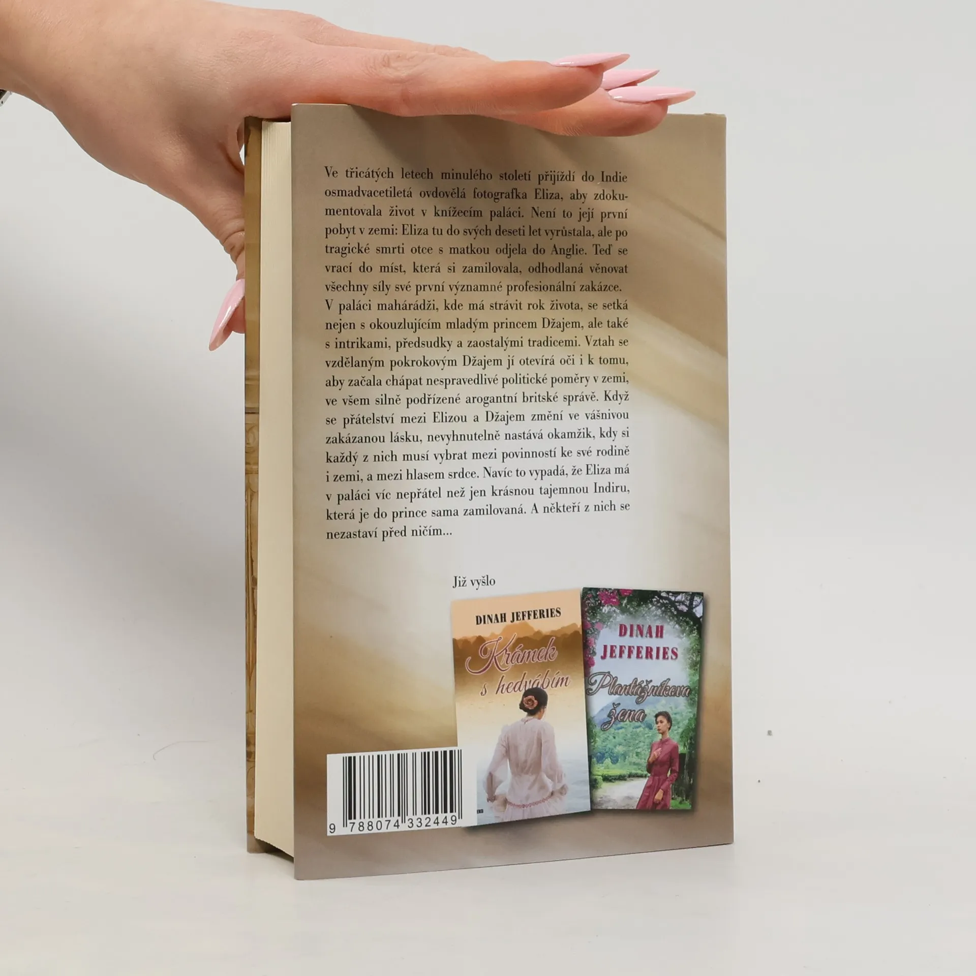 Ve třicátých letech minulého století přijíždí do Indie osmadvacetiletá ovdovělá fotografka Eliza, aby zdokumentovala život v knížecím paláci. Není to její první pobyt v zemi: Eliza tu do svých deseti let vyrůstala, ale po tragické smrti otce s matkou odjela do Anglie. Teď se vrací do míst, která si zamilovala, odhodlaná věnovat všechny síly své první významné profesionální zakázce. V paláci mahárádži, kde má strávit rok života, se setká nejen s okouzlujícím mladým princem Džajem, ale také s intrikami, předsudky a zaostalými tradicemi.