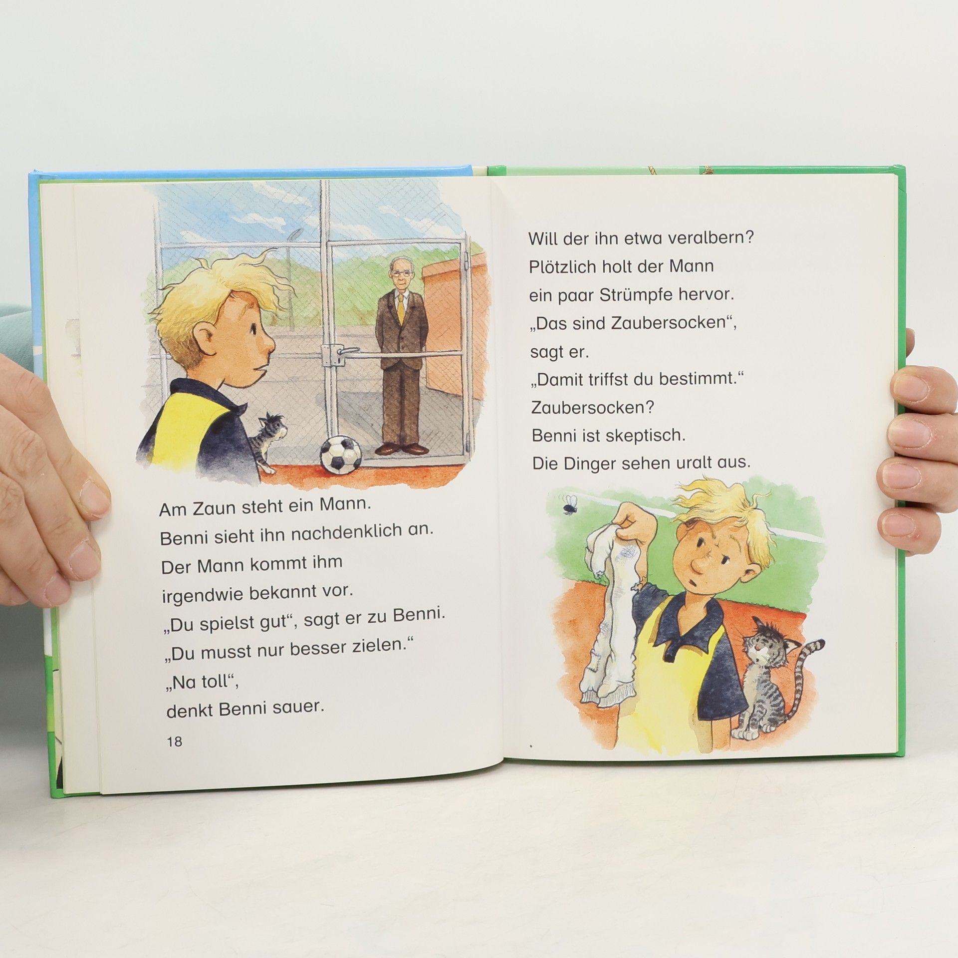 Fußballspielen ist total spannend! Sascha zittert vorm entscheidenden Elfmeterschießen - und hat noch mal Glück. Pechvogel Benni dagegen kann schießen, wie er will, nie trifft er in den Kasten. Doch kaum hat er seine neuen Zaubersocken an, schießt Benni sein erstes Tor. Und Jana verblüfft ihren Trainer mit einem ganz besonderen Hattrick.