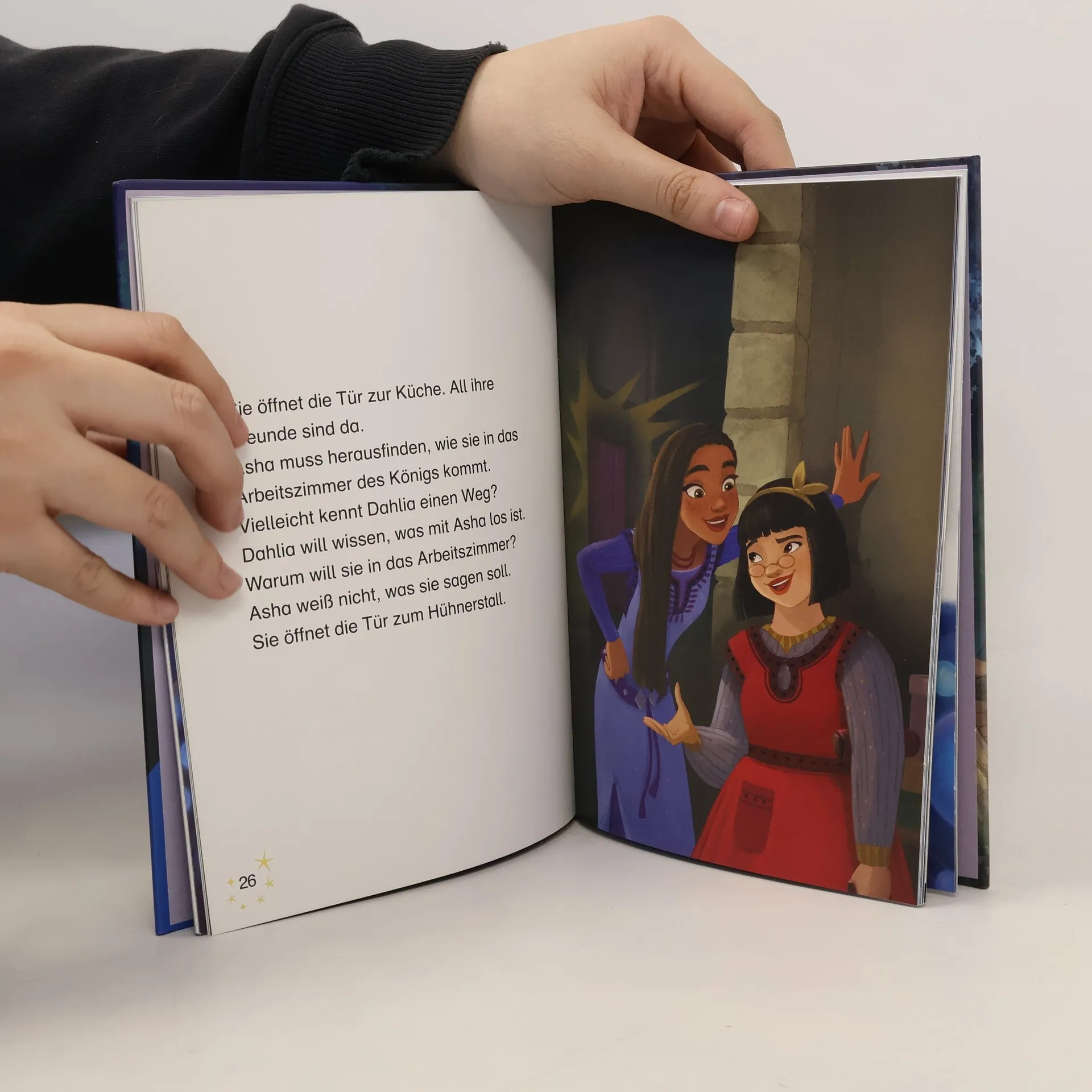 Hier werden Wünsche wahr: Das große Kino-Highlight im Disney-Jubiläumsjahr zum Selbstlesen ab 7 Jahren oder zum Vorlesen Wie entstand eigentlich der Wunschstern, der so viele Wünsche in den großen Disney-Märchen erfüllte? Die fürsorgliche und zuversichtliche Asha lebt in Rosas, dem Königreich der Wünsche. Hingebungsvoll kümmert sie sich um ihre Heimat. In einem Moment großer Verzweiflung wendet sie sich an die Sterne – und wird erhört. Gemeinsam mit einem kleinen aber energiegeladenen Stern stellt sie sich ihrem größten Feind und beweist: Wenn Mut auf Magie trifft, werden Wünsche wahr. Dieses Erstlesebuch zum Film bringt die Magie von „Wish“ ins eigene Zuhause. In einfachen Sätzen und kurzen Kapiteln mit vielen Bildern wird der Film für Kinder ab 7 Jahren nacherzählt. Seite für Seite lesen die Kinder die Geschichte selbst und werden Wort für Wort zum Leseprofi.
