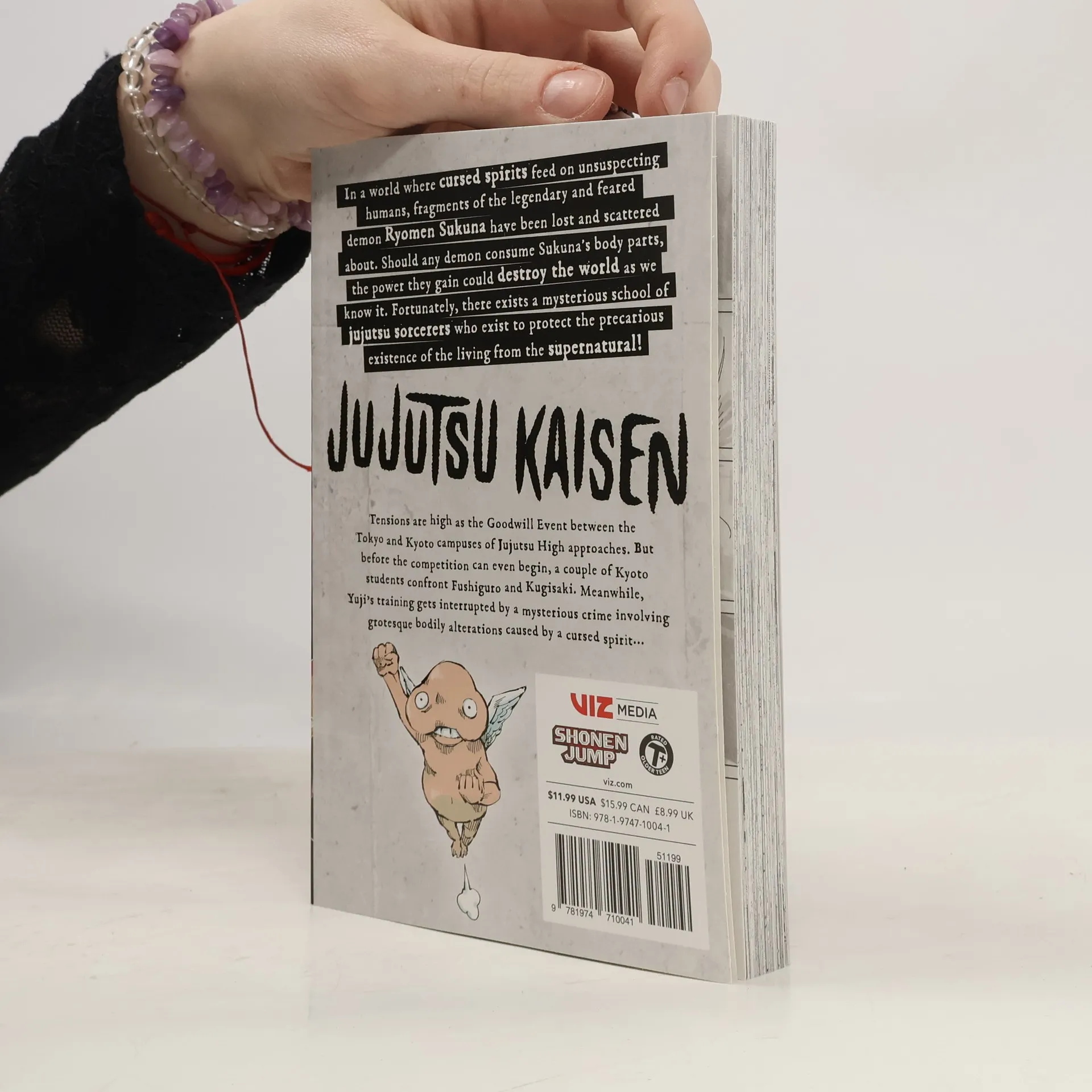 "Yuji Itadori is resolved to save the world from cursed demons, but he soon learns that the best way to do it is to slowly lose his humanity and become one himself! In a world where cursed spirits feed on unsuspecting humans, fragments of the legendary and feared demon Ryomen Sukuna were lost and scattered about. Should any demon consume Sukuna's body parts, the power they gain could destroy the world as we know it. Fortunately, there exists a mysterious school of Jujutsu Sorcerers who exist to protect the precarious existence of the living from the supernatural! Tensions are high as the Goodwill Event between the Tokyo and Kyoto campuses of Jujutsu High approaches. But before the competition can even begin, a couple of Kyoto students confront Fushiguro and Kugisaki. Meanwhile, Yuji's training gets interrupted by a mysterious crime involving grotesque bodily alterations caused by a cursed spirit." Provided by publisher