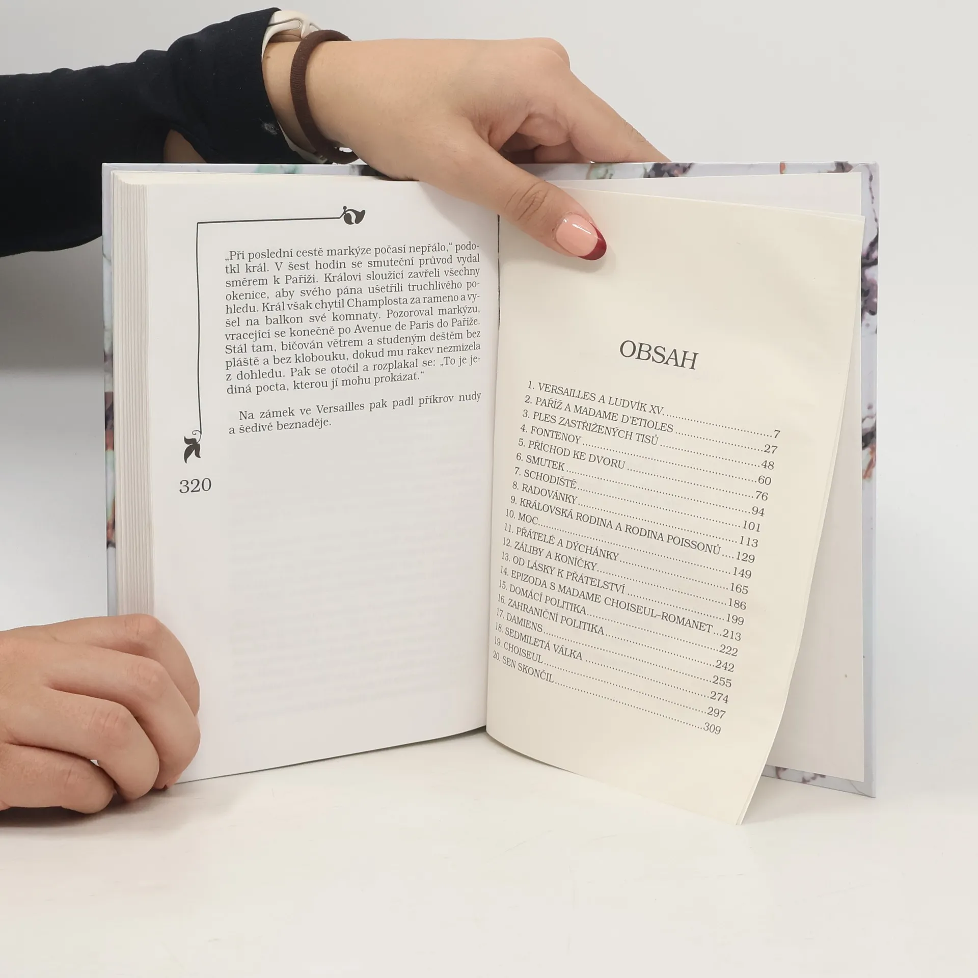 Život, vztahy a intriky v okolí krále Ludvíka XV. a jeho milenky madame de Pompadour. Spíše než o román jde o beletrizovaný historický výklad se srozumitelným a čtivým podáním historických i politických souvislostí a vylíčením prostředí a vztahů. Množství údajů, jmen a historických podrobností je podáno jako s chutí, svižně a zasvěceně psané "drby", ale asi právě proto dobře a snadno čitelné.