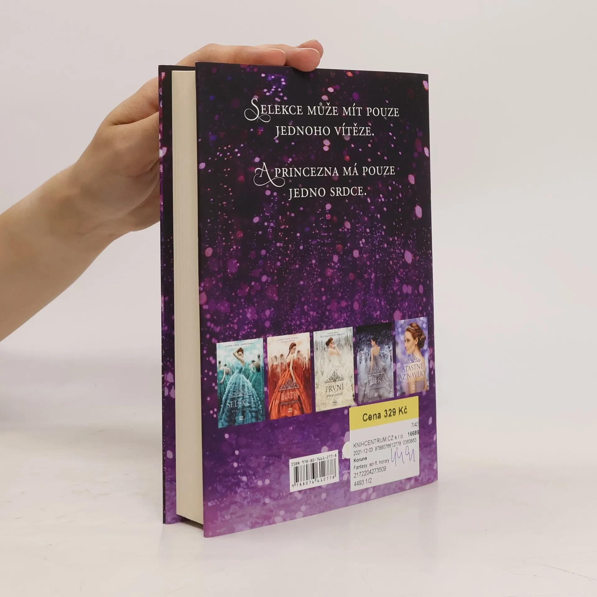 Šestá kniha fantaskní dívčí série Selekce pokračuje v osudech mladičké princezny Eadlyn, ústřední hrdinky románu Dcera. Když byla Eadlyn přinucena zúčastnit se Selekce, netušila, že by se mohla zamilovat do jednoho z 35 nápadníků. Ji prostě žádná pohádka nečekala! Jen počítala dny, až bude moct poslat všechny domů. Po událostech, které se odehrály v paláci, si ale uvědomuje, že nemůže být na všechno sama. A že srdce někdy překvapí i nejotrlejšího cynika. Co když ale bude muset učinit volbu, která je důležitější, než si kdy pomyslela? Nakladatelská anotace.
