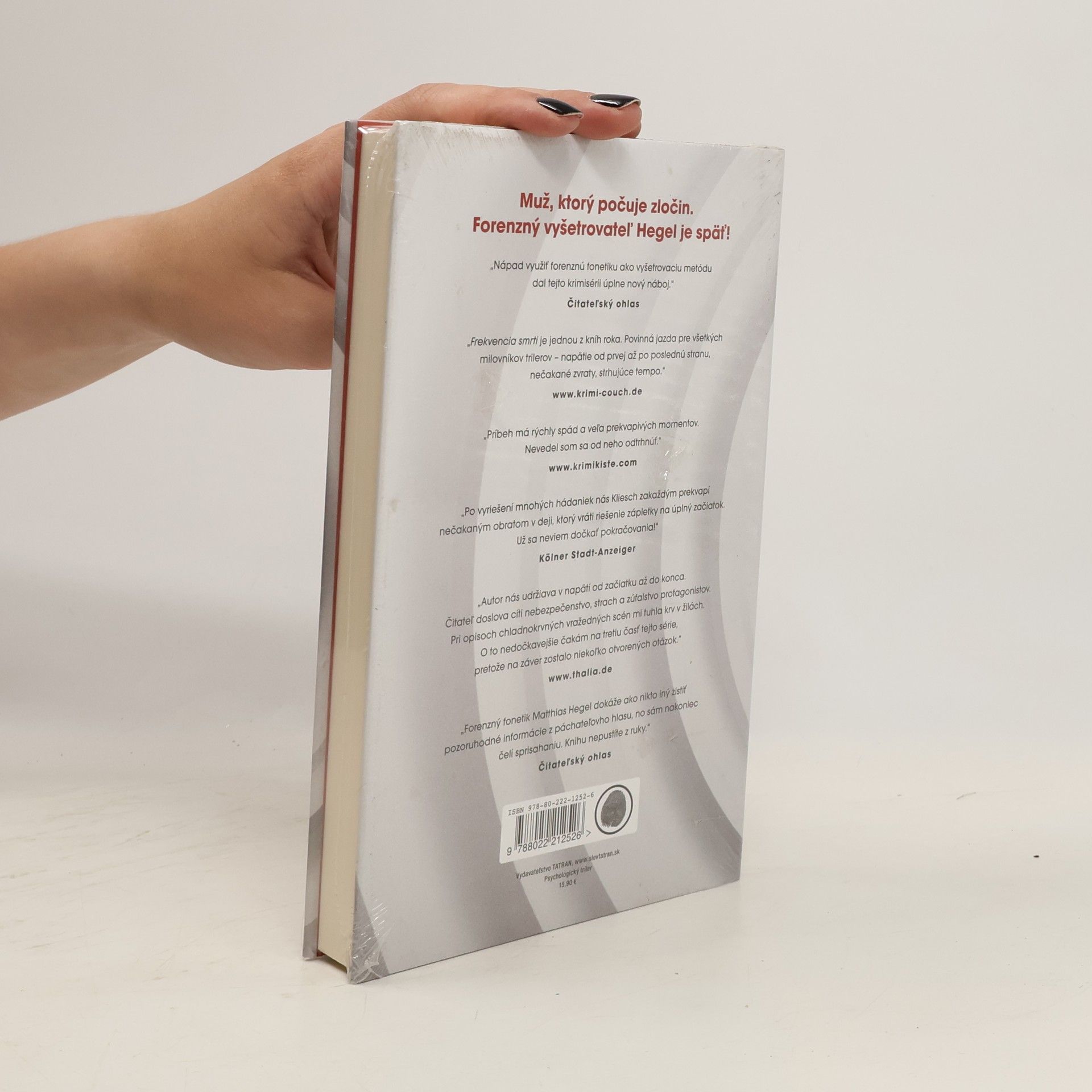Zúfalá žena hystericky volá na tiesňovú linku. „Pomoc, moje dieťa zmizlo! Je tu len krv...“ V pozadí počuť zvuky zápasu, potom sa hovor náhle preruší. Telefonát vie vystopovať jedine forenzný fonetik Hegel, no ten je stále vo väzbe, lebo polícia ho podozrieva z vraždy. Napokon ho predsa len prepustia do domáceho väzenia, aby im pomohol s prípadom. Hegel a Jula napriek vzájomnej skepse znovu spolupracujú a tvoria zaujímavú dvojicu, ako sme ju spoznali už v prvom diele s názvom Auris. Čoskoro zistia, že sú na stope zločineckej organizácii, ktorá sa nezastaví pred ničím. Hegel nesmie opustiť byt, a tak sa osamotená Jula pri vyšetrovaní niekoľkokrát ocitne v ohrození života. Frekvencia smrti ponúka mimoriadne úspešne namixovaný koktail napätia, rýchlej akcie, nejasných motívov, šokujúcich odhalení a prekvapivých zvratov. Presvedčivé postavy, ich emocionálny svet a vierohodné pohnútky robia z diela Vincenta Kliescha dokonalý triler.