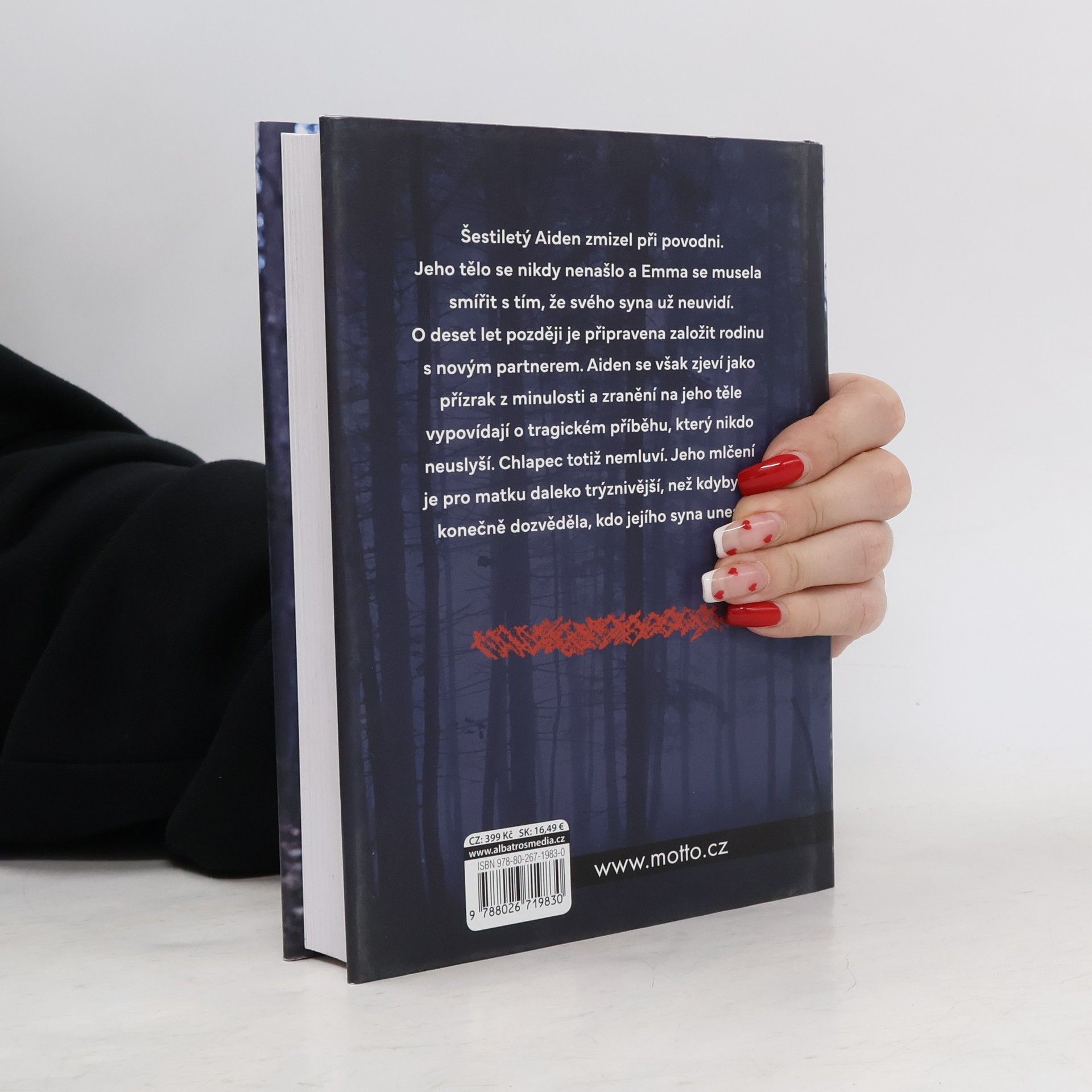 Její syn zná pravdu. Co mu brání promluvit? Šestiletý Aiden zmizel při povodni. Jeho tělo se nenašlo a Emma se musela smířit s tím, že svého syna už nikdy neuvidí. O deset let později je připravena založit rodinu s novým partnerem. Aiden se však zjeví jako přízrak z minulosti a zranění na jeho těle vypovídají o tragickém příběhu, který nikdo neuslyší. Chlapec totiž nemluví. Jeho mlčení je pro matku daleko trýznivější, než kdyby se konečně dozvěděla, kdo jejího syna unesl. Emma při ničivé povodni ztratila syna. Tělo šestiletého Aidena však nebylo nikdy nalezeno, takže mladé matce zůstala naděje, že se její dítě jednoho dne vrátí. Aidenovi to trvalo celých deset let. Když se v jejím životě náhle opět zjevil, místo radosti přišlo další trauma. Návrat ztraceného syna Emmě moc klidu nepřidal. Odmítá totiž mluvit a prozradit, kdo jej celu dobu ukrýval a zjevně i týral. Zatímco Aiden usilovně mlčí, jeho matka je odhodlaná zjistit pravdu. S blížícím se termínem porodu to pro ni ovšem není jednoduché. Aiden navíc její snahy bojkotuje a vše nasvědčuje tomu, že po sourozenci, s nímž by se musel dělit o pozornost, netouží. Emma nenalézá útěchu ani u svého partnera a poslední kapkou pro ni je neustálá přítomnost médií, která v jejím rodinném dramatu vidí senzaci.